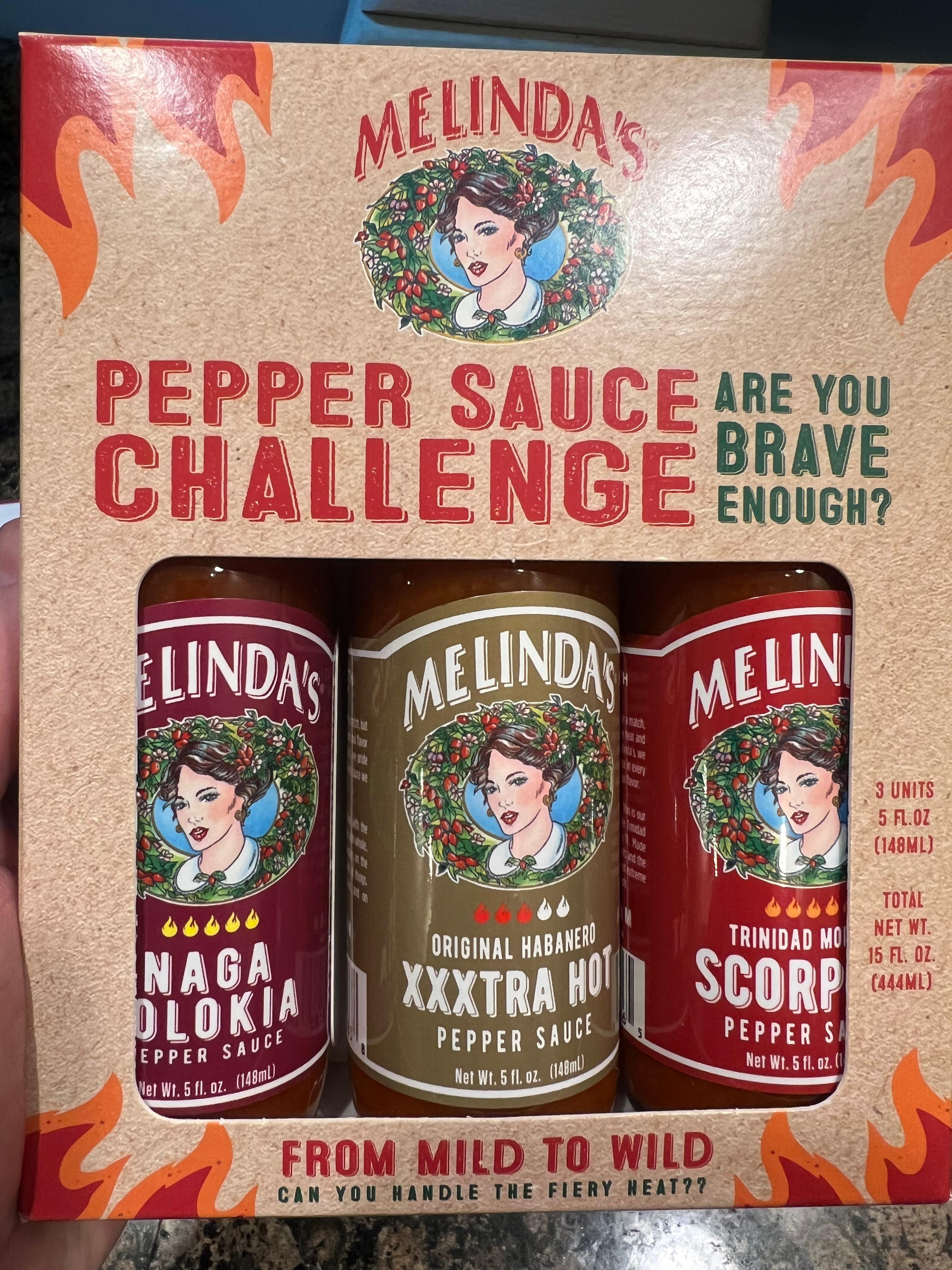 Melinda’s 3 pack at TJ Maxx. As usual with Melinda’s good flavor and the ghost and scorpion have a touch of heat. Good find for $7.99 for 3 5oz bottles.