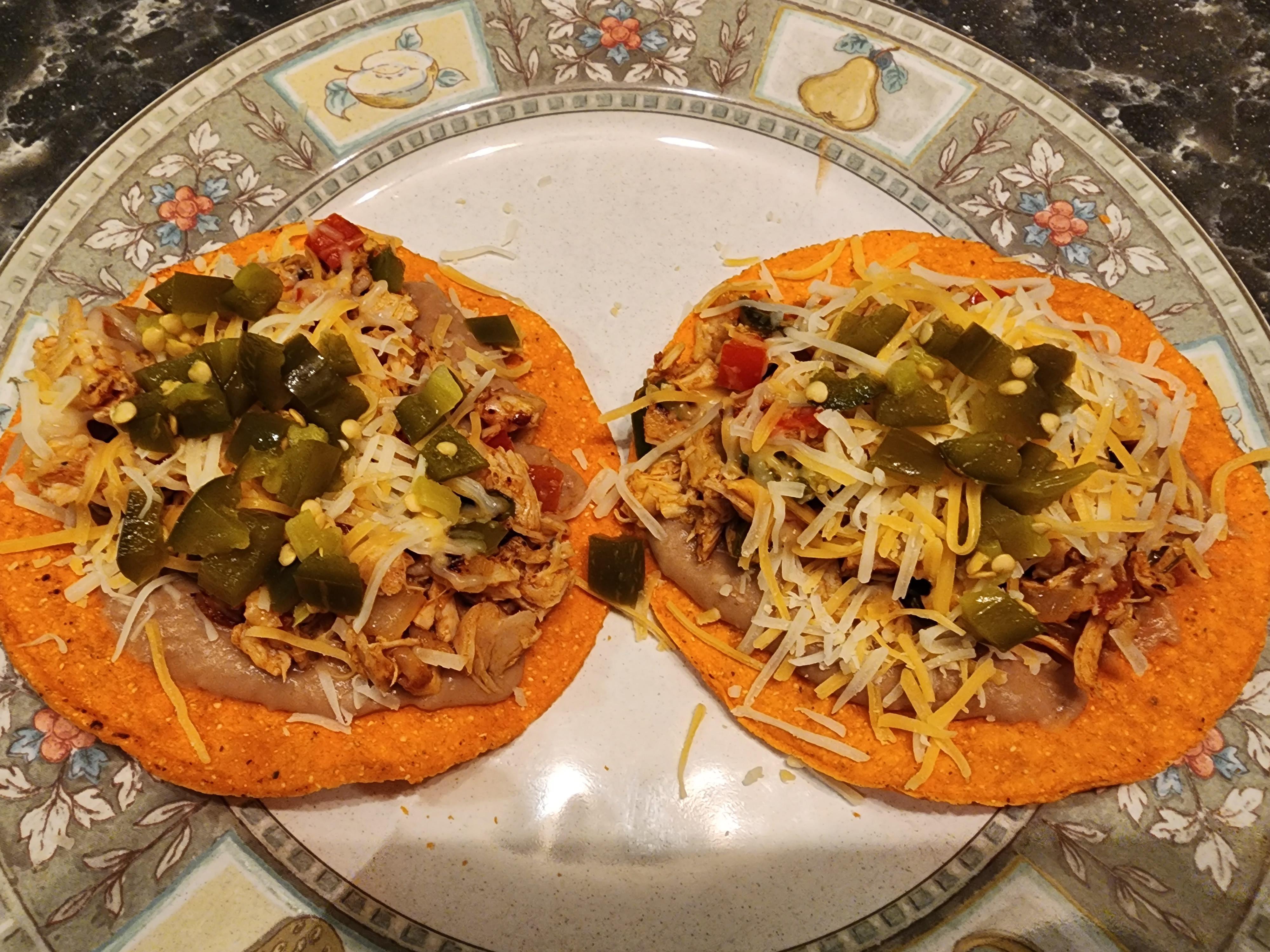 On a tostada shell, layer on some refried beans or guacamole (or both), then add the turkey mixture. Top that with shredded cheese, diced jalapenos (pickled or fresh), lettuce, tomatoes, or whatever you prefer.