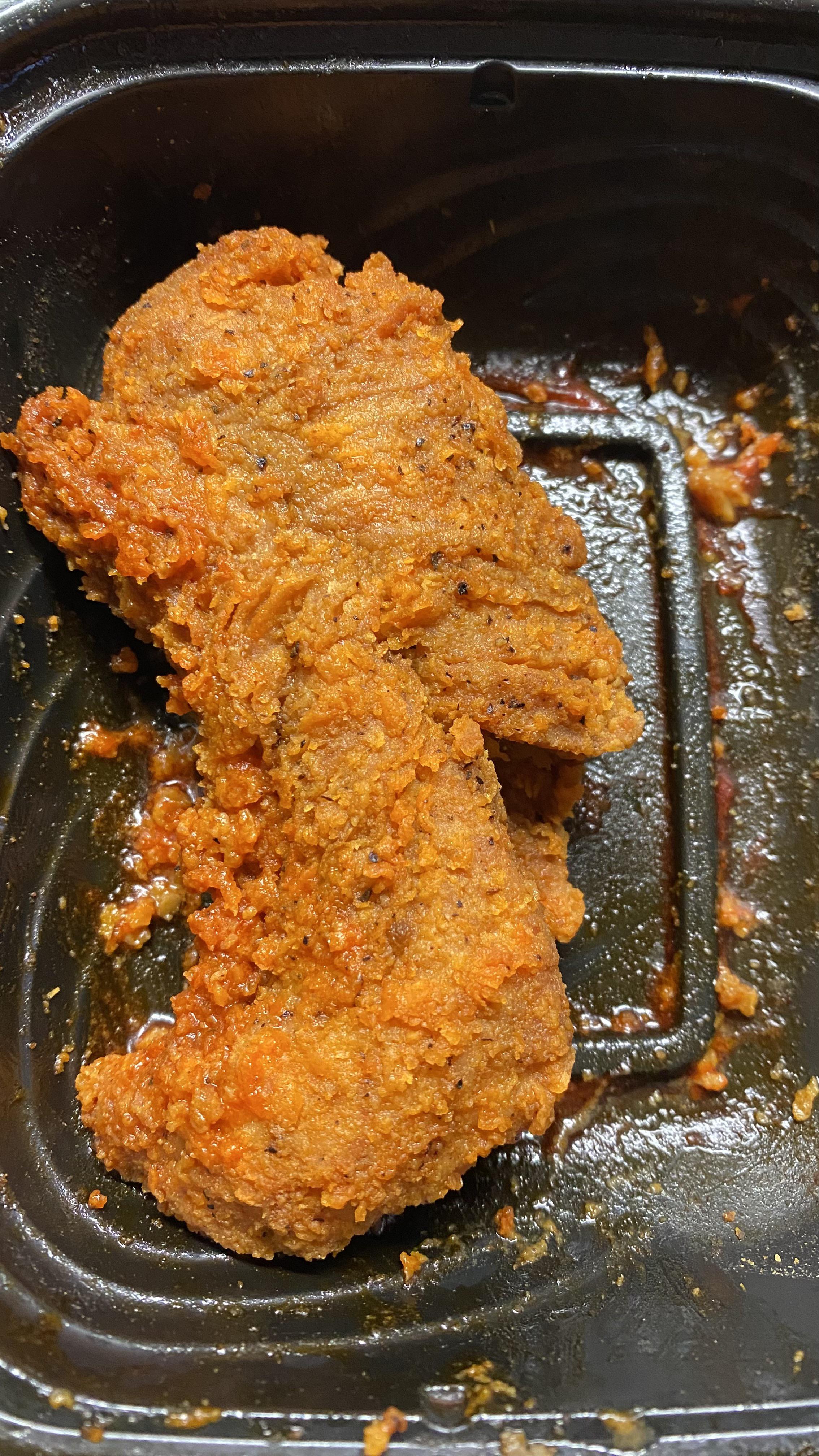 Nashville Hot Chicken tender from Publix. Very tasty with a surprising kick to it. Would recommend.