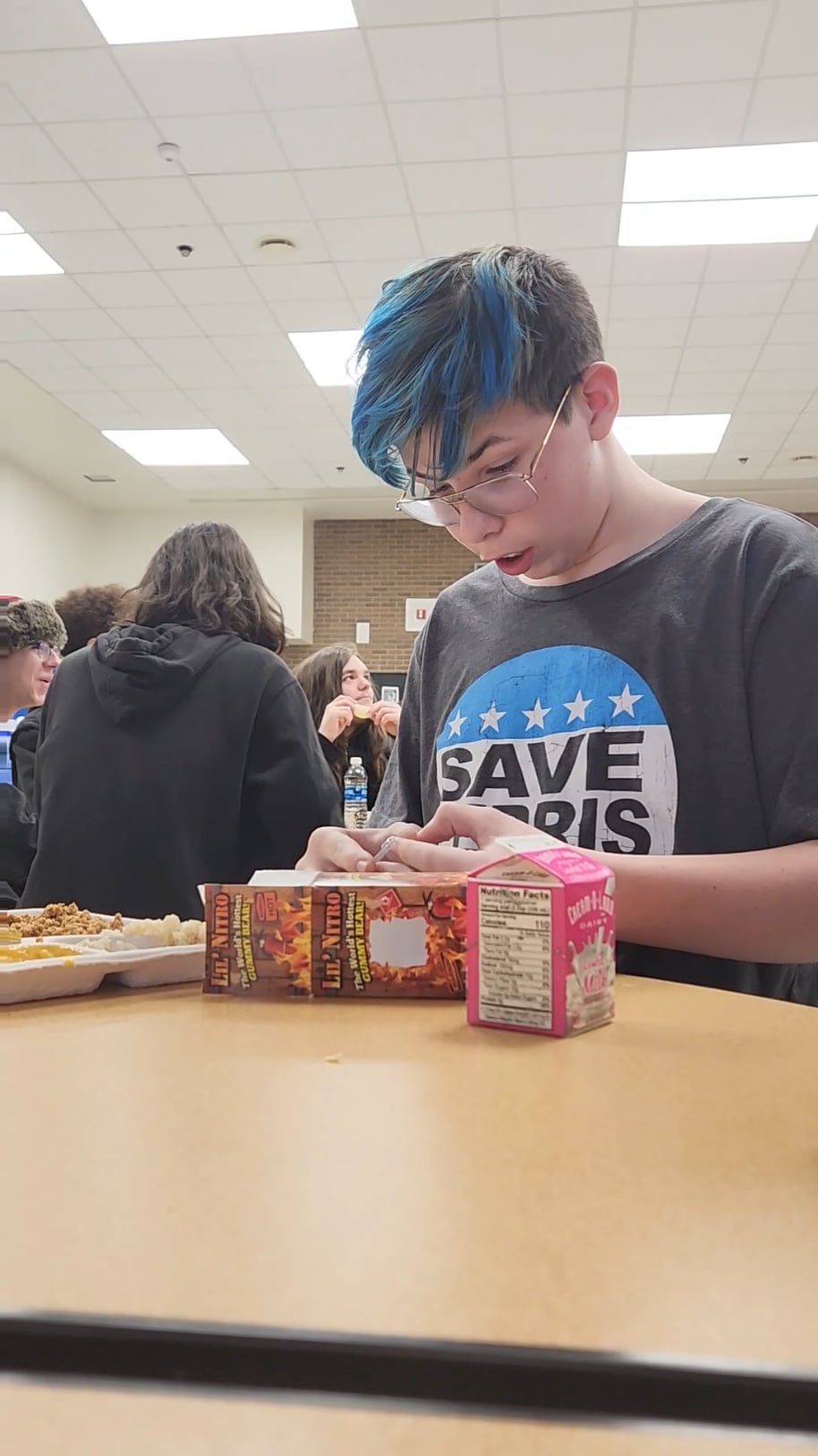 me eating Lil nitro in school