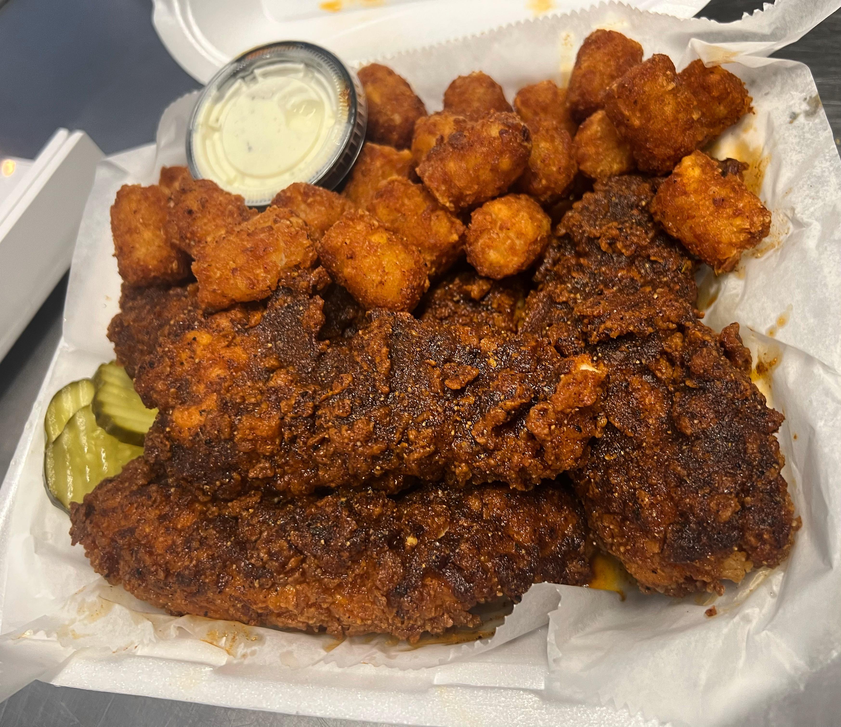 Medium hot chicken tenders and spicy tots Chilichili foodChili RecipesRecipeRedditReddit SpicySpicyspicy foodspicy recipes