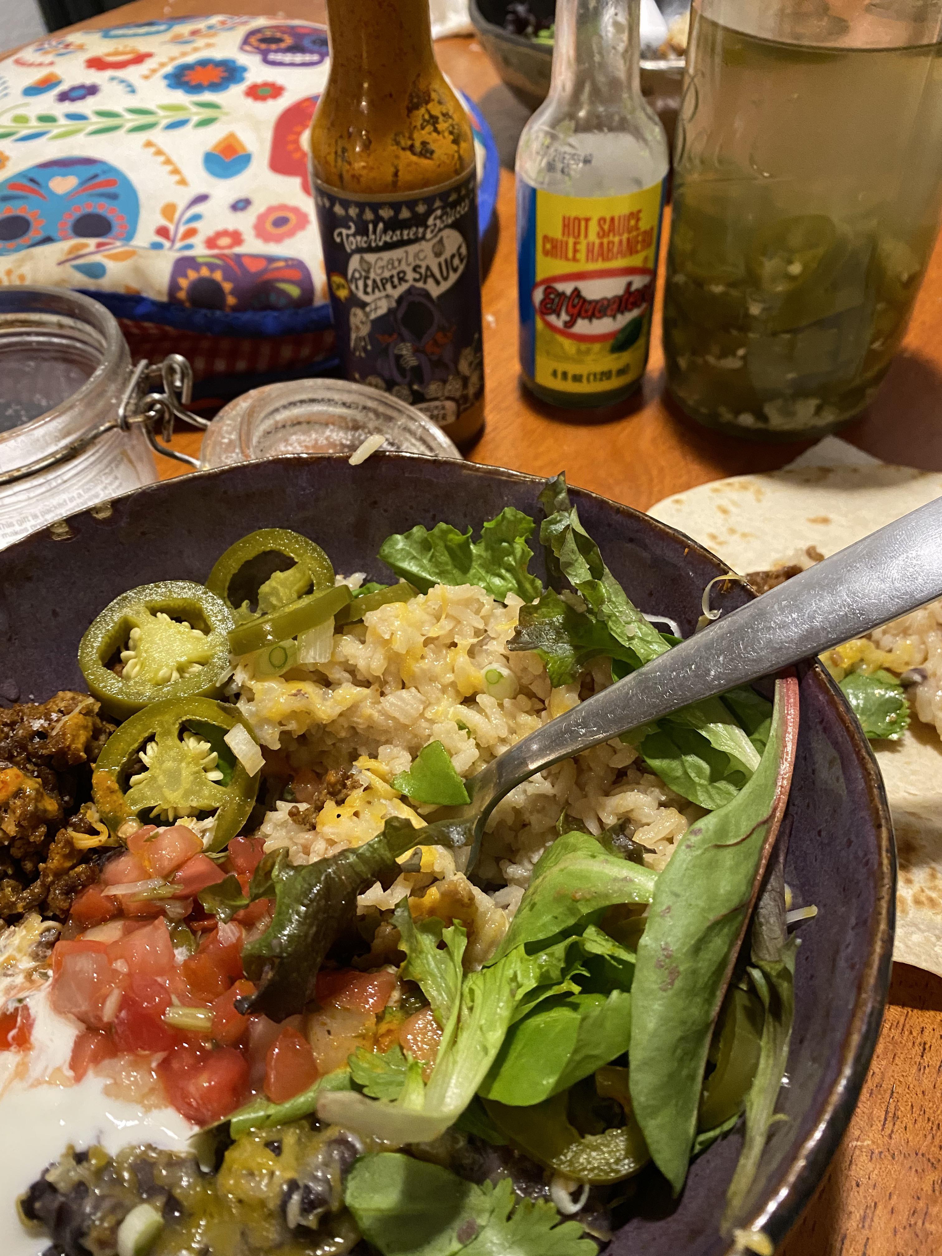 Burrito bowl with sidekicks.