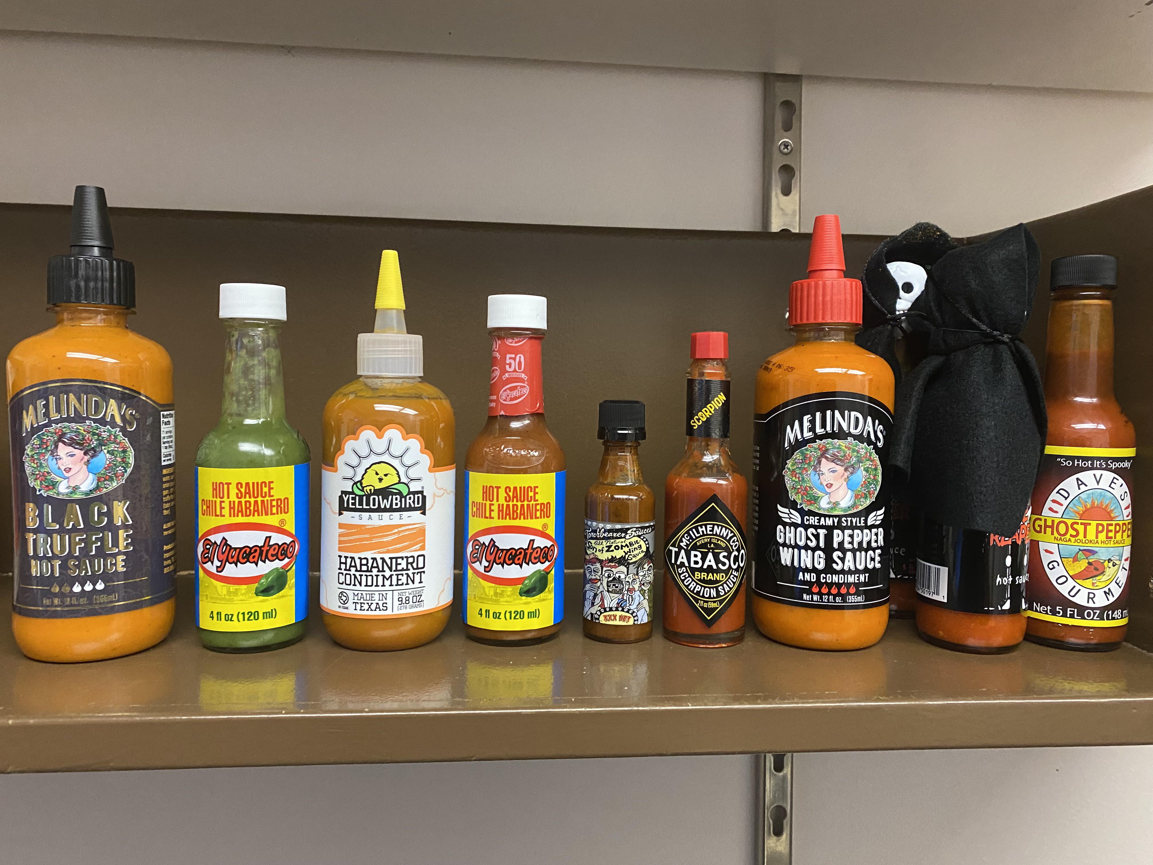 Hot Sauce Challenge for international language college students. So I’m running a hot sauce gauntlet for a bunch of college students from all over the world. If you need milk, you’re out. How do you think this spread will do? What can I add?