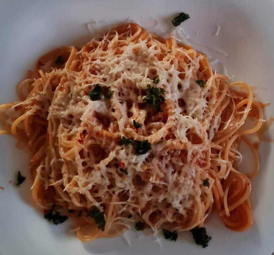 I made some spicy pasta today with dried chili pepper and some chili spices!