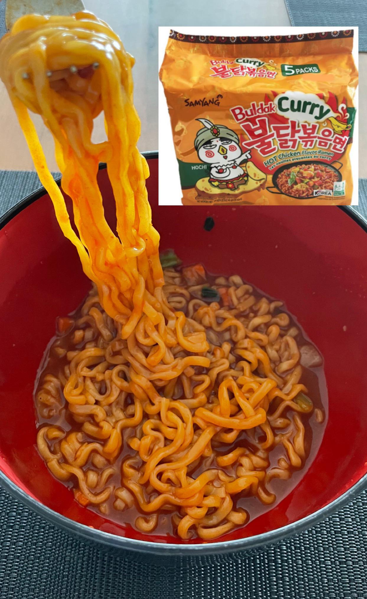 This is very good! I purchased this on Amazon. It has a great Japanese curry flavor, but is almost too spicy for me. I typically like a true medium, and this is definitely hot which takes away from the flavor in my opinion. Next time I’ll add an egg, maybe some mozzarella. Really good overall, and I would recommend especially if you love a good spice! The Kimchi flavor from this brand is great as well. Not as spicy.