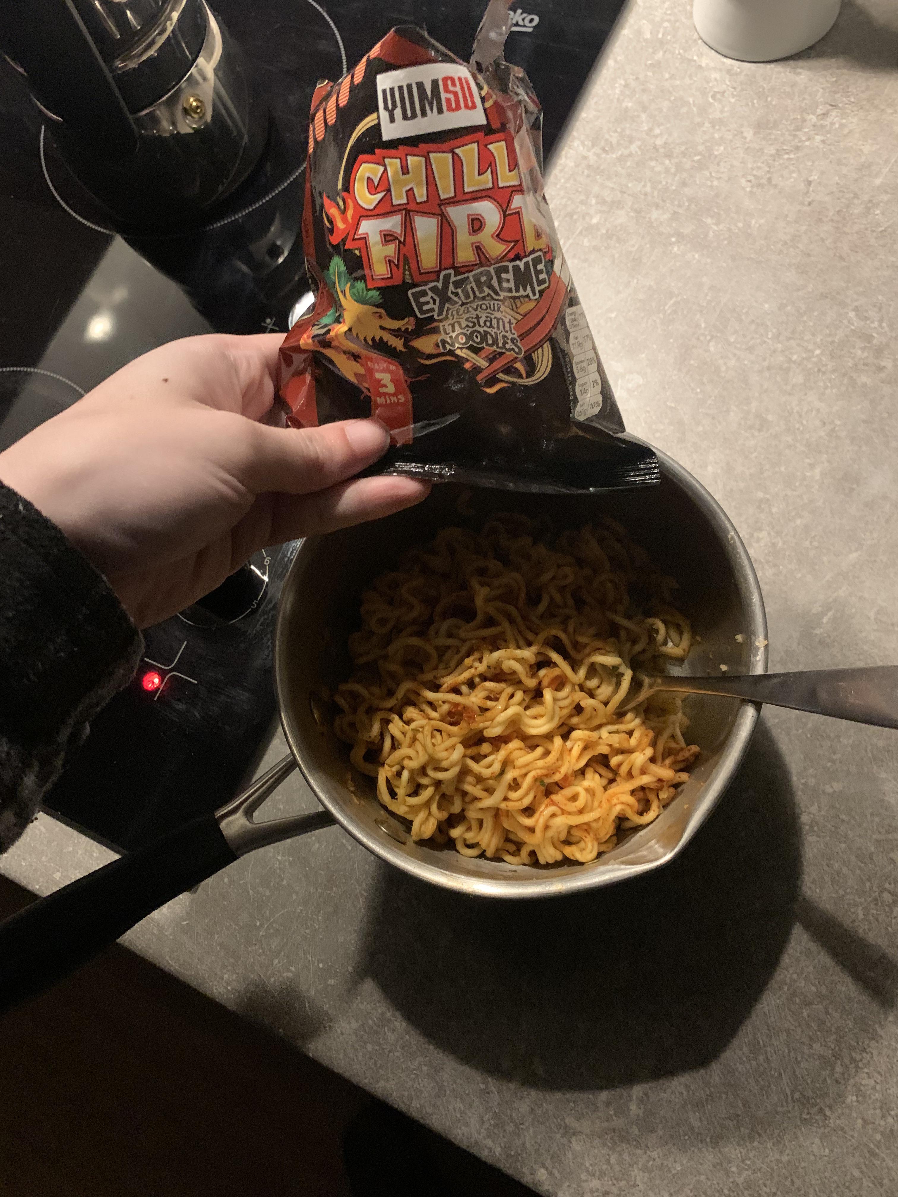 Owwieeee! I survived this scary instant noodle challenge. Lets make it a real challenge with a s**tload of Carolina Reaper hot sauce. I’ll let you know if I survive it. Try and ignore the shady ass way I’m eating this.
