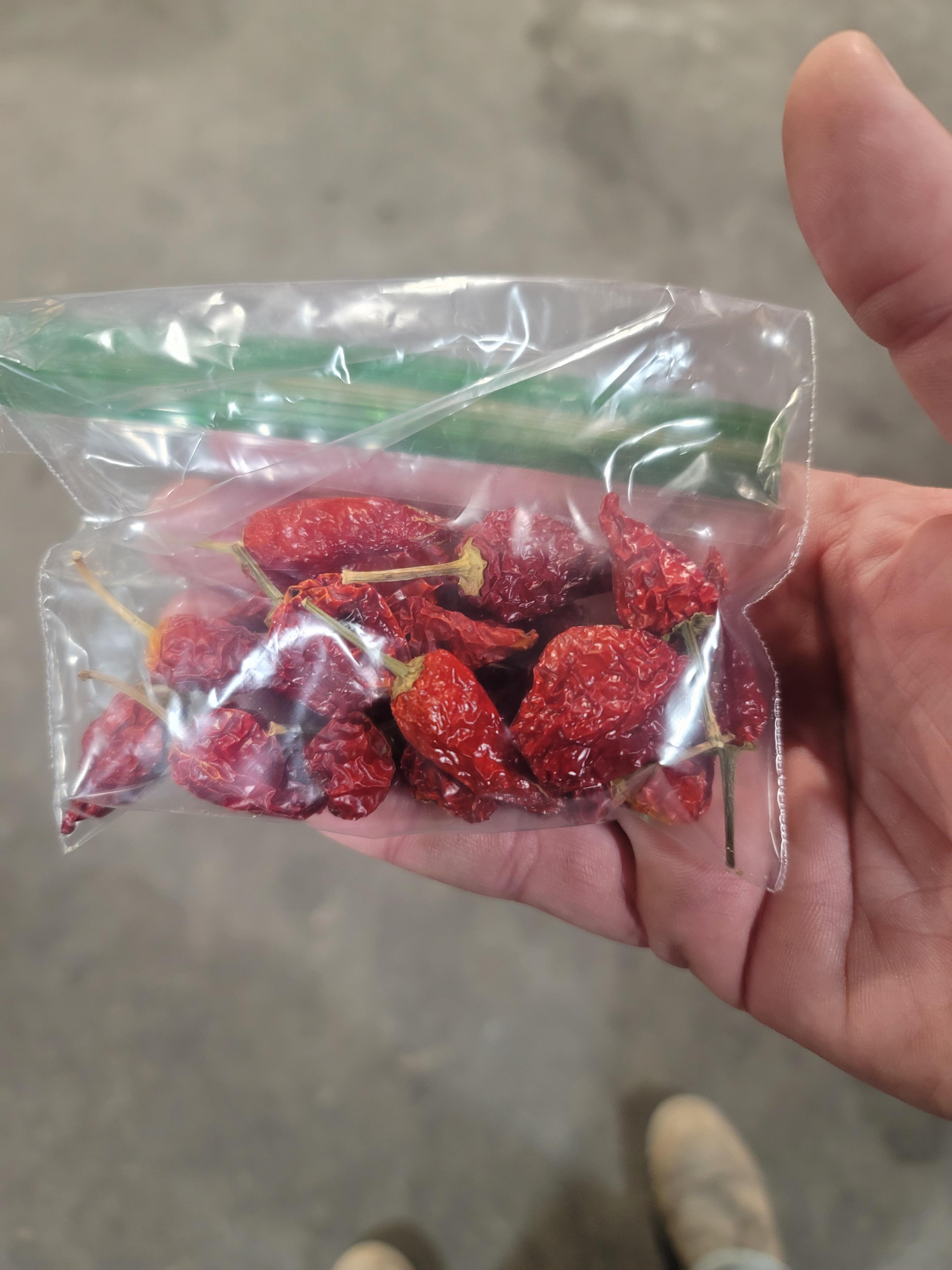 A friend at work gave me these dried chilies. He doesn’t know what type they are, but he described them as similar spice to habanero but more flavor. I’m thinking scotch bonnet, but could be wrong.