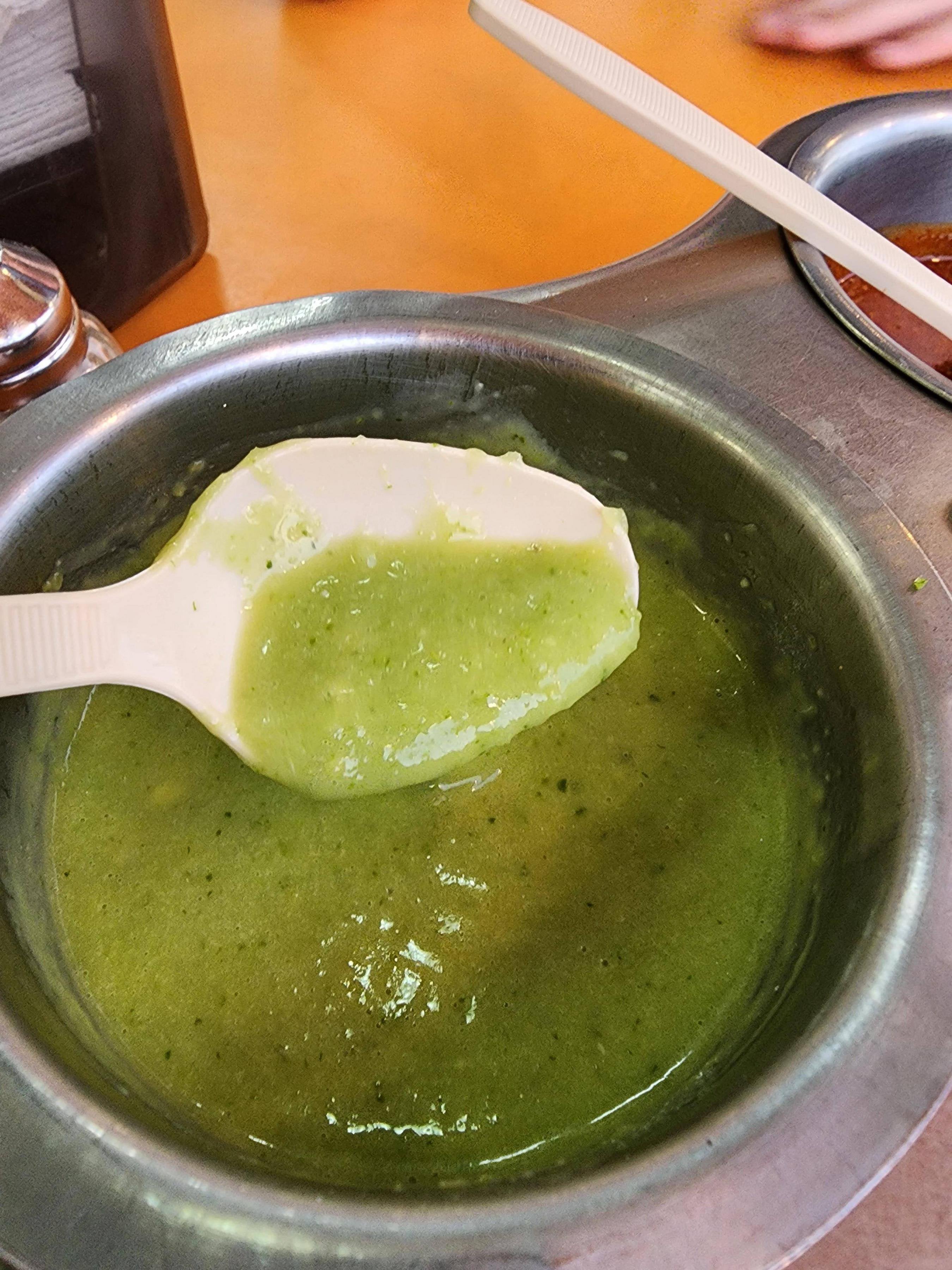 Probably used tomatillos, green habanero, salt, and maybe garlic