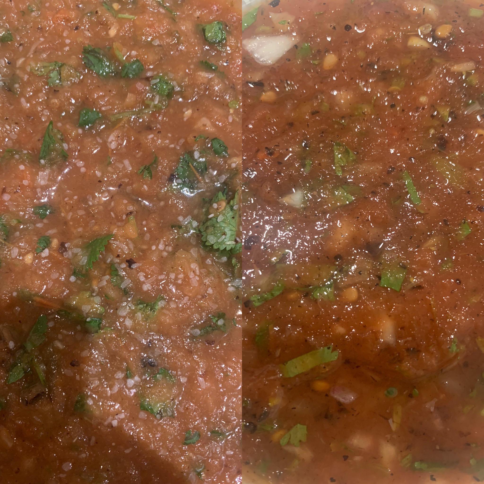 Okay so I have advice! Swap out your fresh tomatoes for canned whole peel tomatoes. Keep everything else the same. Then you will get that restaurant style salsa. Try it again if you want and let me know! I’m intrigued. I love the side by side dedication