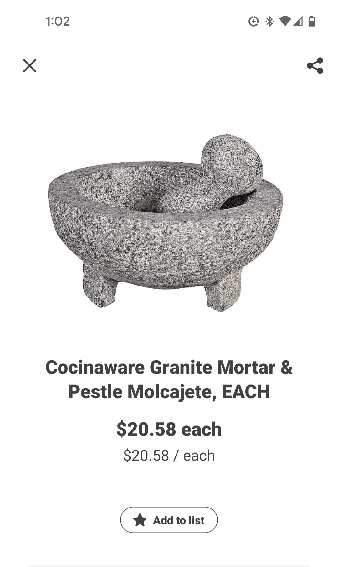 My understanding is that you want granite for a mortar & pestle (more abrasive than marble, bit not so porous that it holds onto a lot of your fine-ground spices) and some sort of “lava rock” for a molcajete (really abrasive for mashing down the fruits and veggies in guacamole, salsa, etc.).