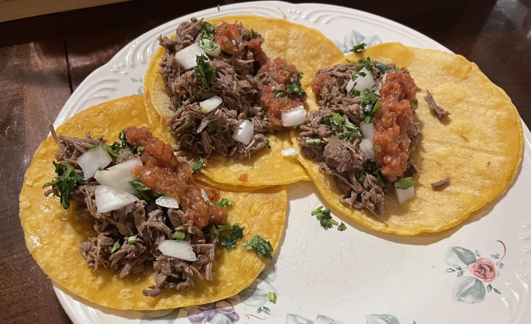 I didn’t realize I was out of salsa until the meat had already been cooking for an hour, so I threw together what I already had on hand. I roasted onion, garlic, two jalapeños, two serranos, and a habanero. For the tomato I just used canned (sorry) whole tomatoes. Blended everything with cumin, lime juice, a splash of orange juice, salt + pepper, and fresh cilantro. About as “vanilla” as a salsa can be but it was a hit!