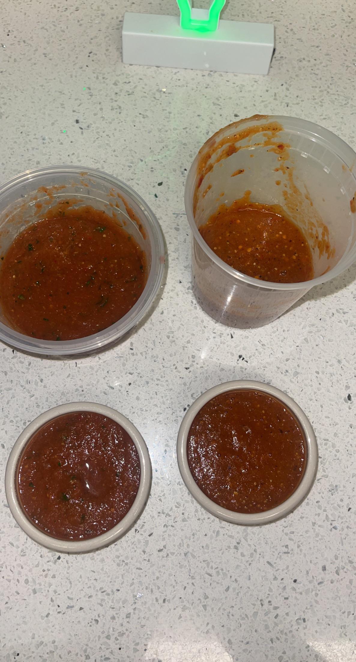 Restaurant style and salsa rojaby manwhat6 pico de gallosalsaSauce 8 Comments manwhat6 3 years ago The one on the left is– can of whole peeled tomatoes (without juice) – 2 Serrano peppers – 1 jalapeño – 4 cloves garlic – 20-30 cilantro leaves – salt to tasteOn the right the salsa roja recipe is– 7 tomatillos – 2 Roma tomatoes – (both broiled until charred) – 15 chili de arbol – 1 chili gullijo – 1/2 tbsp salt – 1 tsp of chicken bouillon – 1/4 onion – 2 garlic clovesLittle bit of lime juice in both TAZBro 3 years ago Are the tomatillos cooked? Is the chicken bullion cooked? JNDIV 3 years ago Is the restaurant style broiled then blitzed? geronimoquince 3 years ago Beautiful. I love the arbol pepper. So tiny. But with all that flavor and heat.You ought to try the knorr caldo de pollo bouillon powder. I’ve been using that in place of salt. omg-gorl 3 years ago Which did you like better in the end? 😊 orntar 3 years ago Tomatillos and it still came out that red? orntar 3 years ago Thanks, making this right now!Did you roast the garlic or onion? Bigbro4426 3 years ago 👍Write A CommentYou must be logged in to post a comment.