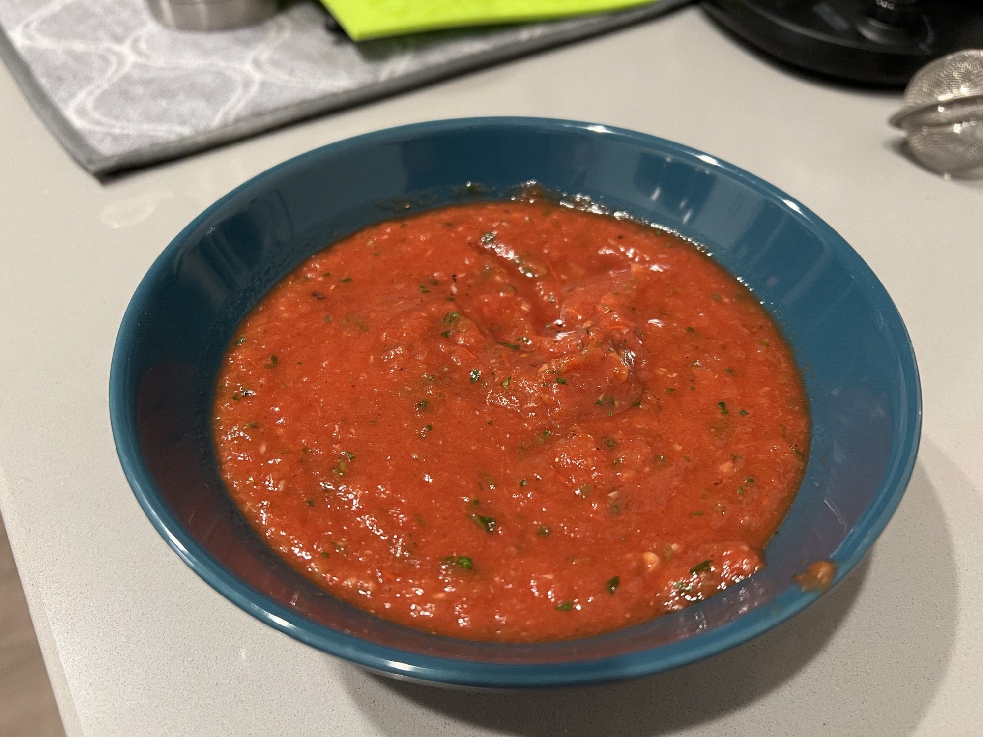 I use 4 Roma tomatoes (Roast them in the oven) and then a can of fire roasted tomatoes 😋