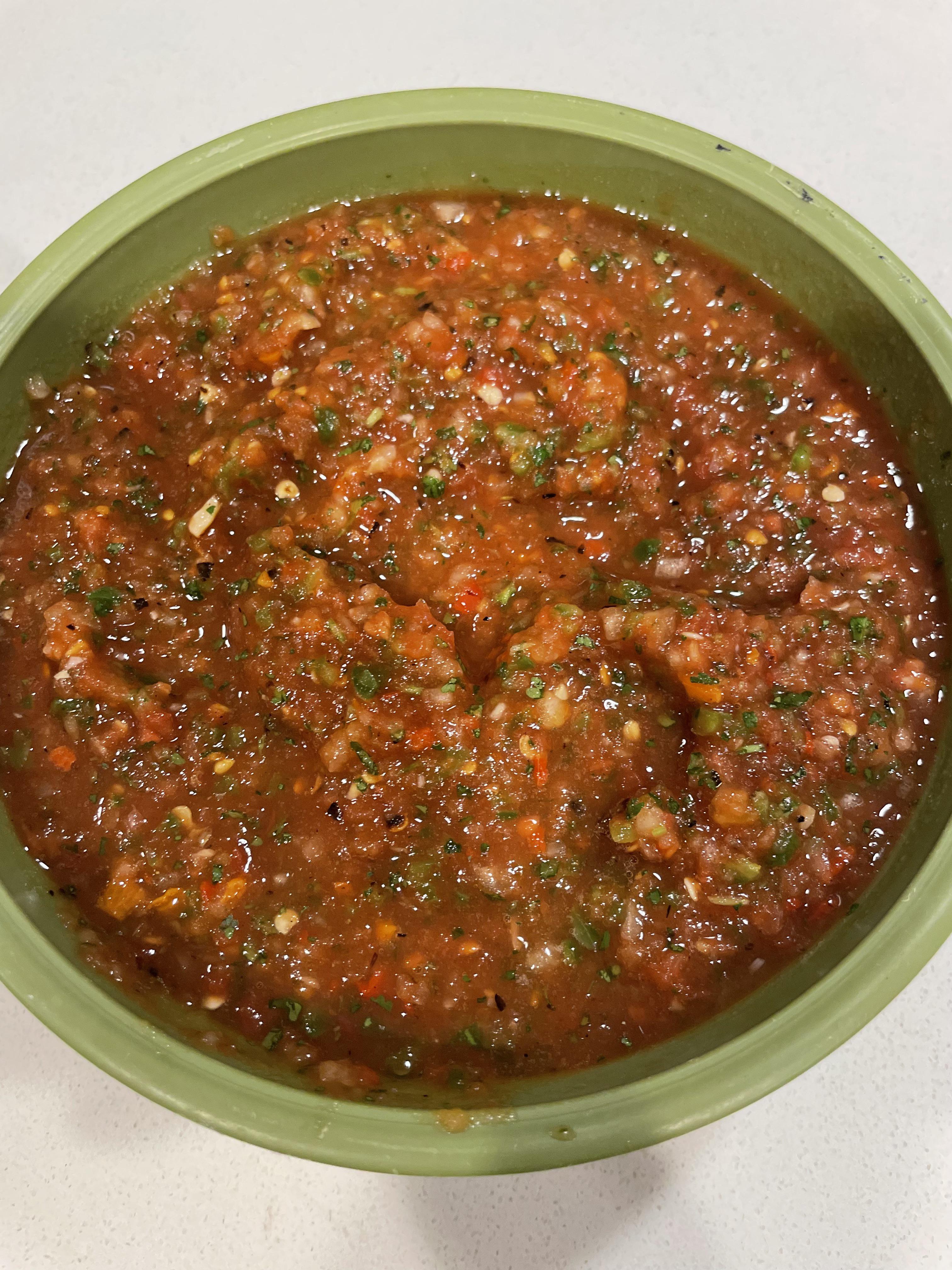 homemade salsa is so much better by lilLaylaXOX pico de gallosalsaSauce 5 Comments lilLaylaXOX 3 years ago 28 oz can whole tomato’s6 garlic cloveshalf white onion3 ghost peppers2 habanero peppers4 serrano2 jalapeñocilantrosalt2 limesslice all the peppers lengthwise. same with garlic. roast in pandice onion and cilantroadd half the liquid and the tomato’s to food processor. add peppers, garlic, onion cilantro, lime and salt. blend to desired consistency ttschepe 3 years ago Lovely. Dry-Membership8141 3 years ago It really, really is. I can dig jarred salsa with ground beef tacos, but that’s about it. Gotta make it fresh for everything else. picksea 3 years ago love the bright colors from the chilies. looks very spicy 🤤 Nella_Morte 3 years ago How much salt is the right amount for a perfect salsa? I’m always off. Same with the lime.Write A CommentYou must be logged in to post a comment.