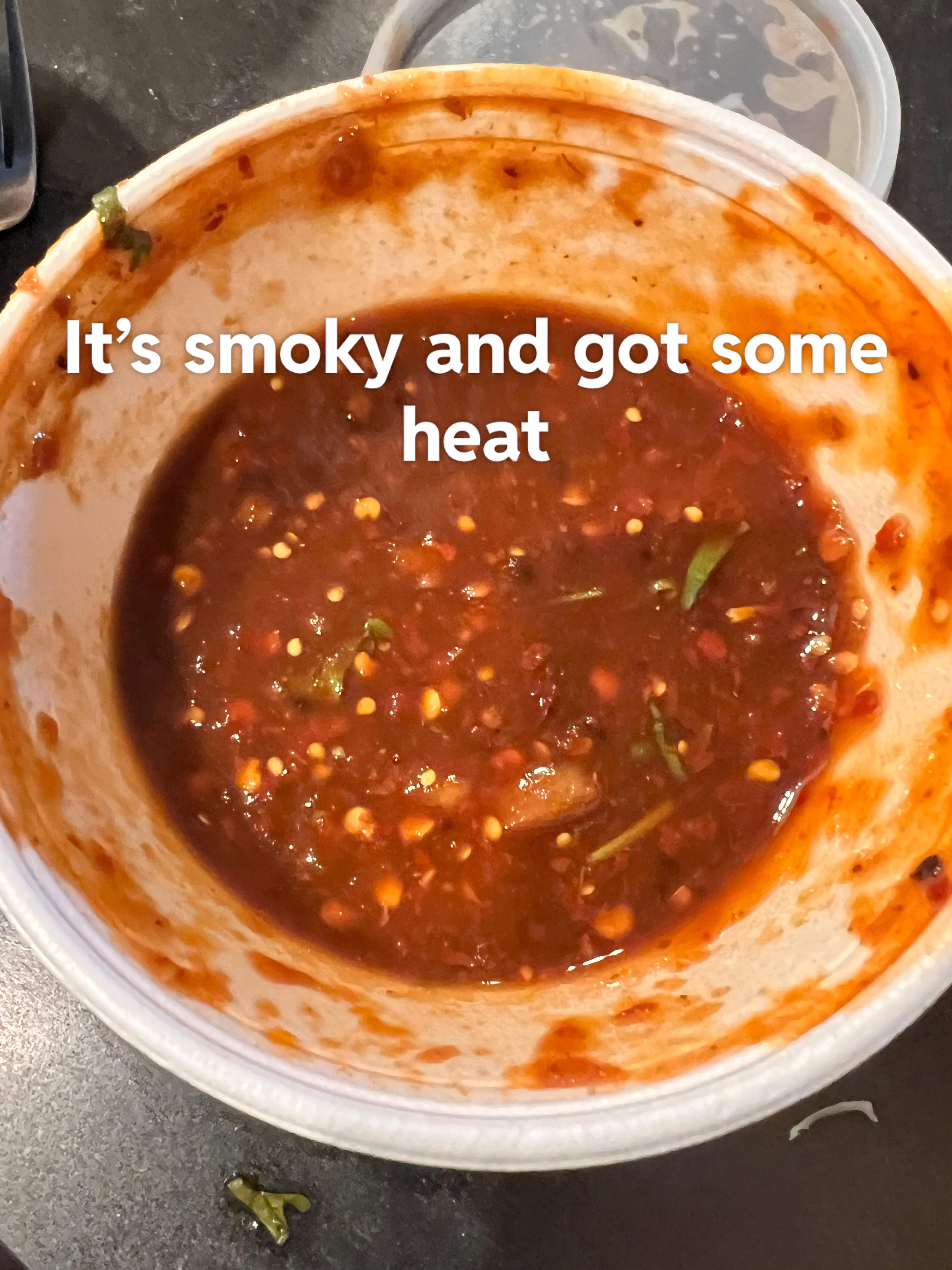The smokeyness may come from roasting the tomatoes / peppers until they’re slightly burnt.