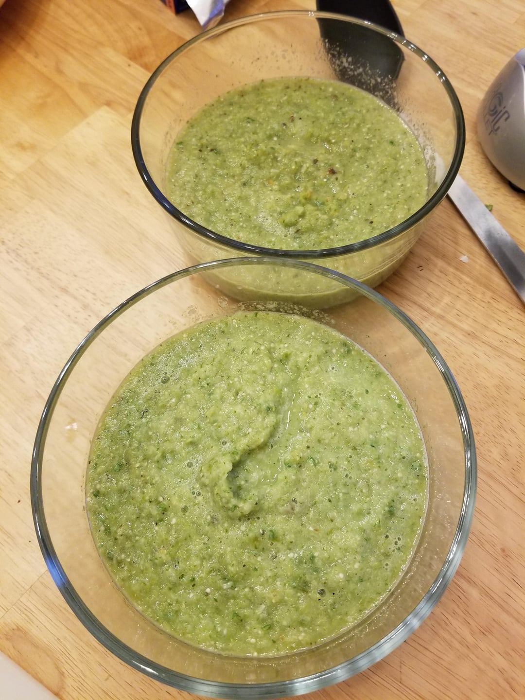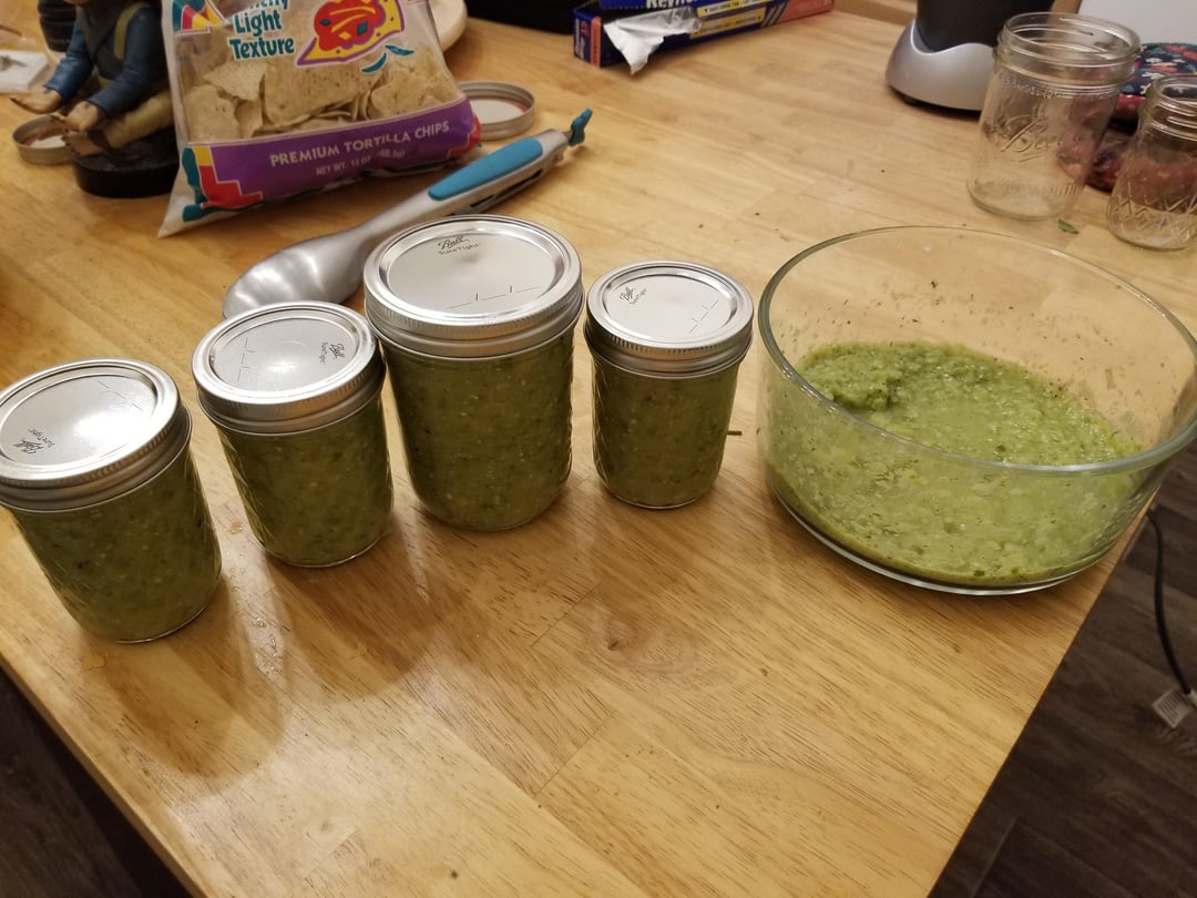 My second attempt at a salsa verde after feedback from my first attempt post a couple weeks ago. In total used 2lb tomatillo, 1 yellow onion, 6 garlic cloves, many jalapeno and serrano to kick up the heat and 1 habanero for fun. Lightly drizzled with olive oil and paced all these under broiler for 12 mins. Added to blender with 1 lime juice, a handful of cilantro and salt to taste. Difference from last post is more heat and garlic! Experimented with jarring for the first time and am hoping to adjust this recipe to give the small jars as gifts this holiday season. Thanks for all the feedback!