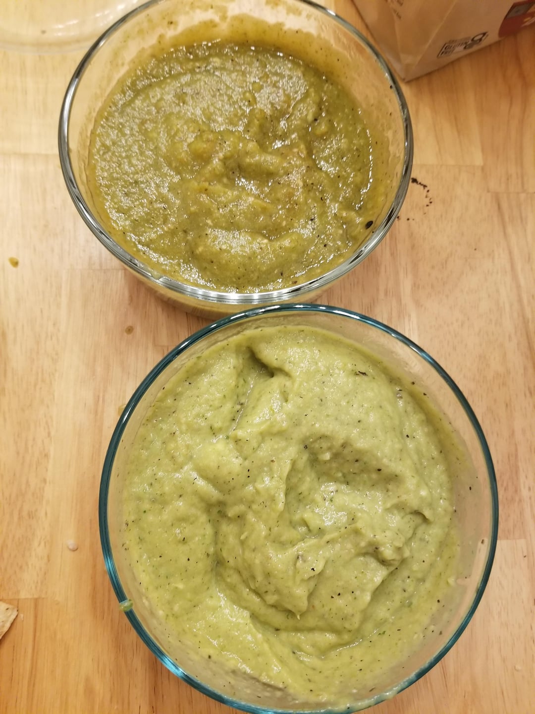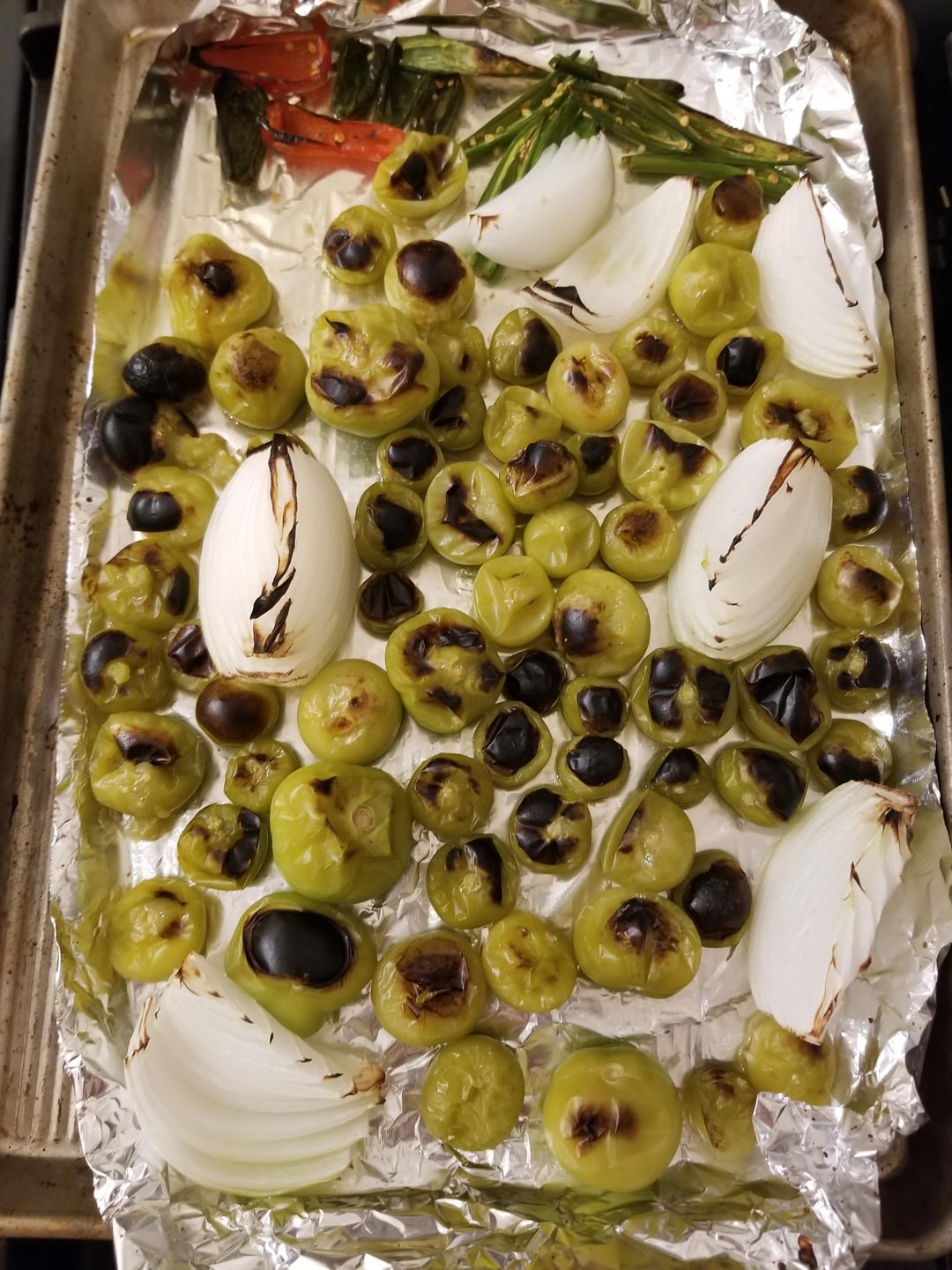 Created a spicy (top) and mild (bottom) salsa verde. Took tomatillos and jalapenos from my garden. Started by de-seeding peppers and broiling for 12 min. Spicy consists of 1lb tomatillo, 2 jalapeno, 4 serrano, and 1/2 white onion. Mixed with 1 lime juice and a handful of cilantro. Mild consists of 1lb tomatillo, 1 jalapeno, and 1/2 white onion. Mixed with 1 lime juice, handful cilantro and 1 avocado (suggested for creamy texture by another user on this group). This was my first ever salsa and I gotta say after tasting I am hooked! Thanks to this group for inspiring me to try a garden and make a salsa verde. See you again next season.
