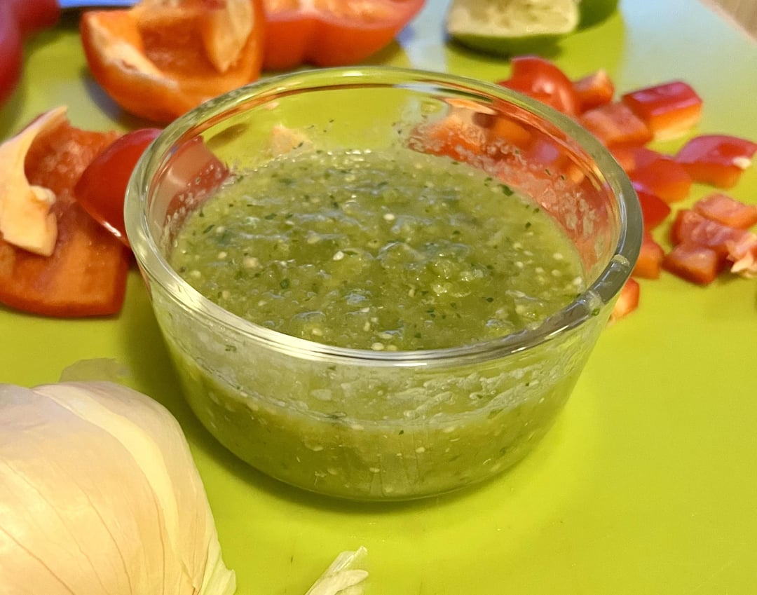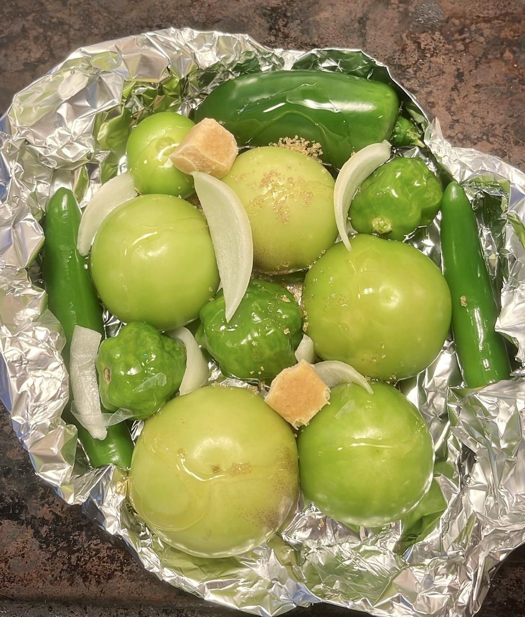gotodsu 3 years ago Tomatillos, peppers (habo, jalapeño, chili), sweet onion, garlic, honey, brown sugar, cilantro, and lime.