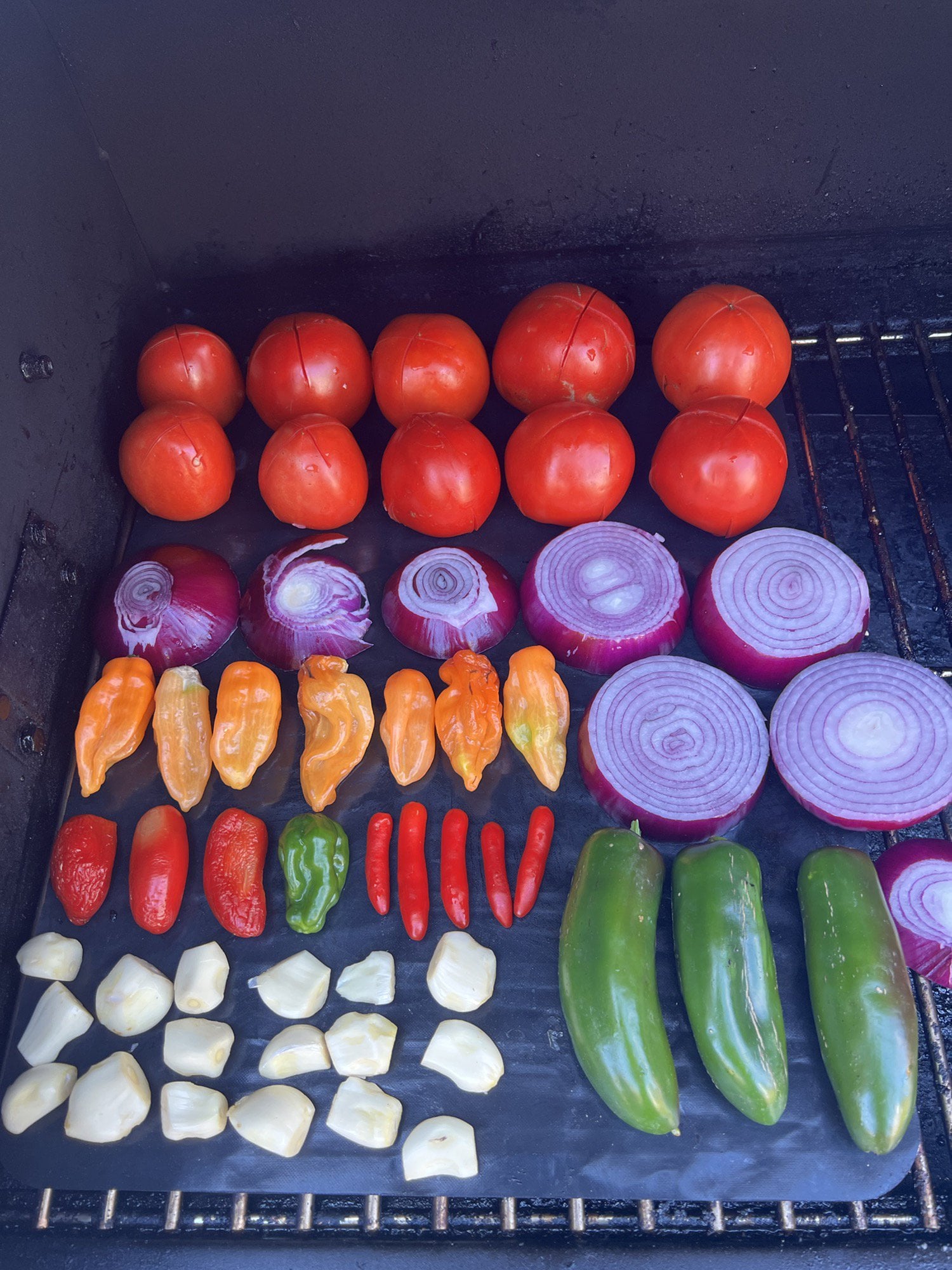 Neighbor dropped off some fresh habaneros, so what else to do than fire up the smoker and make some salsa.