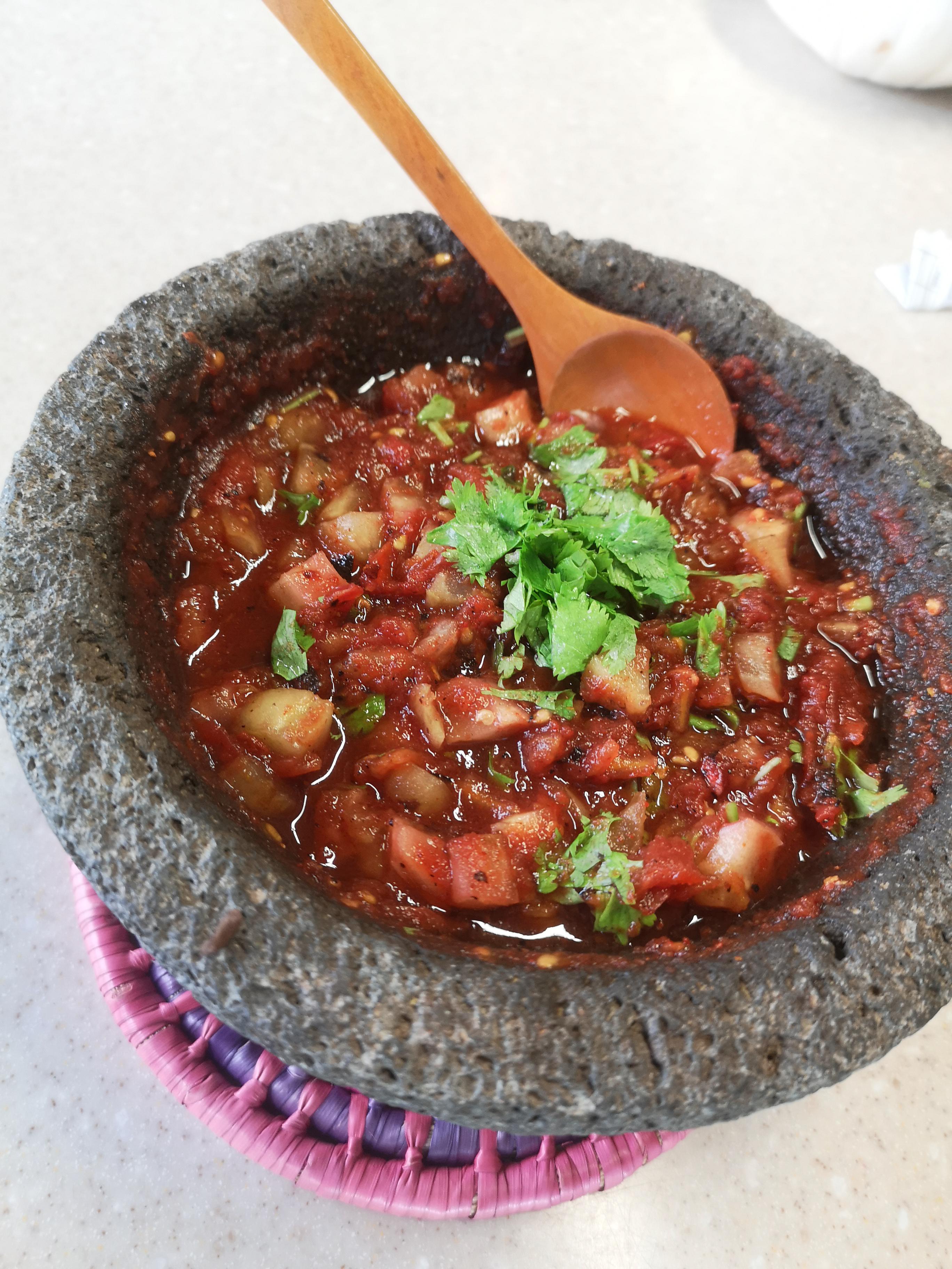 Press the xoconostle seeds to extract all the juice and add to the salsa too. Check the salt and add the coriander.