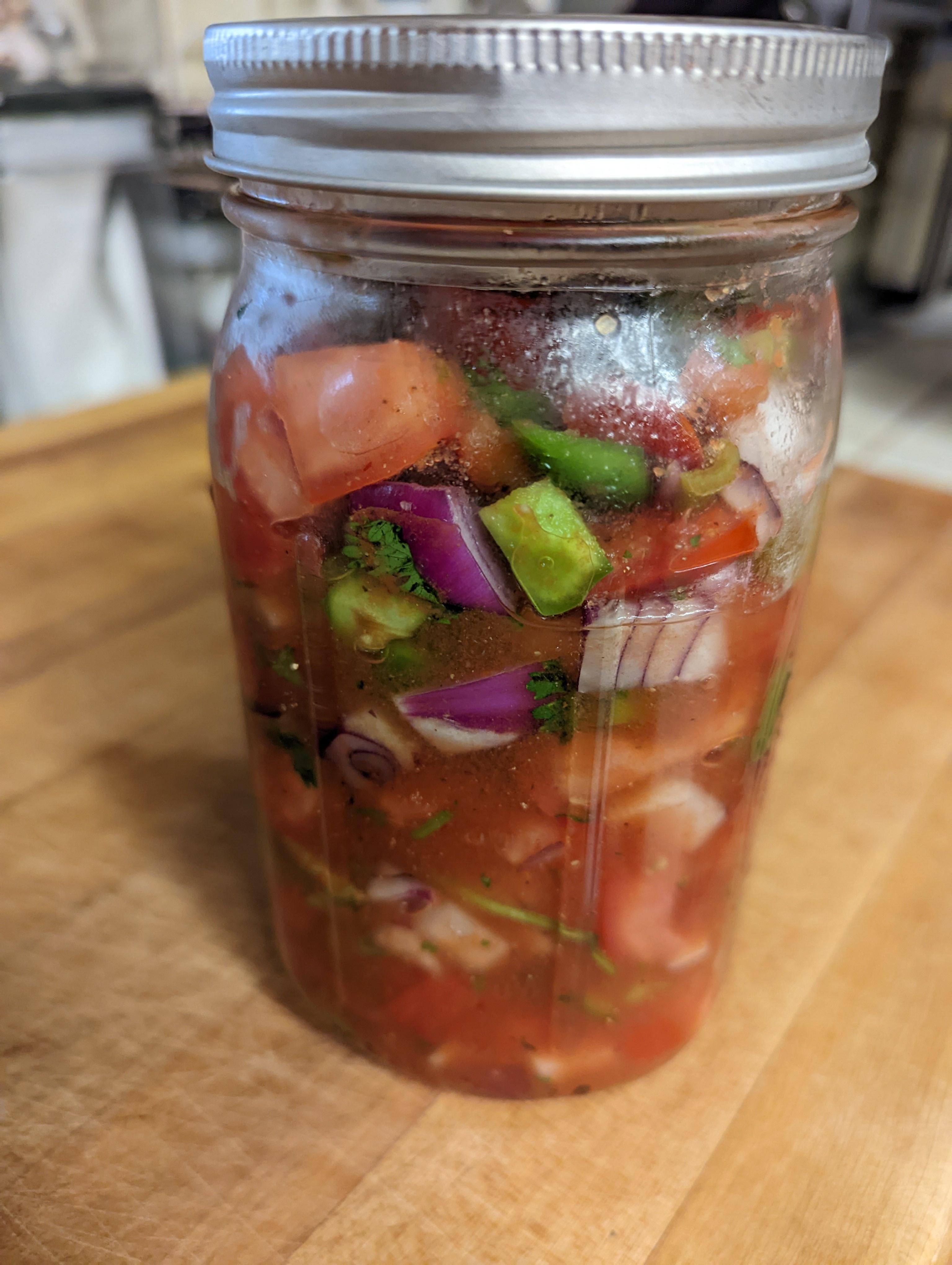 red onion, fresh Roma tomatoes, canned diced tomatoes, cilantro, scallions, bell pepper, diced hatch green chilies, black pepper, cumin, garlic salt, dash of jalapeno sauce.by Solnse pico de gallosalsaSauceWrite A CommentYou must be logged in to post a comment.