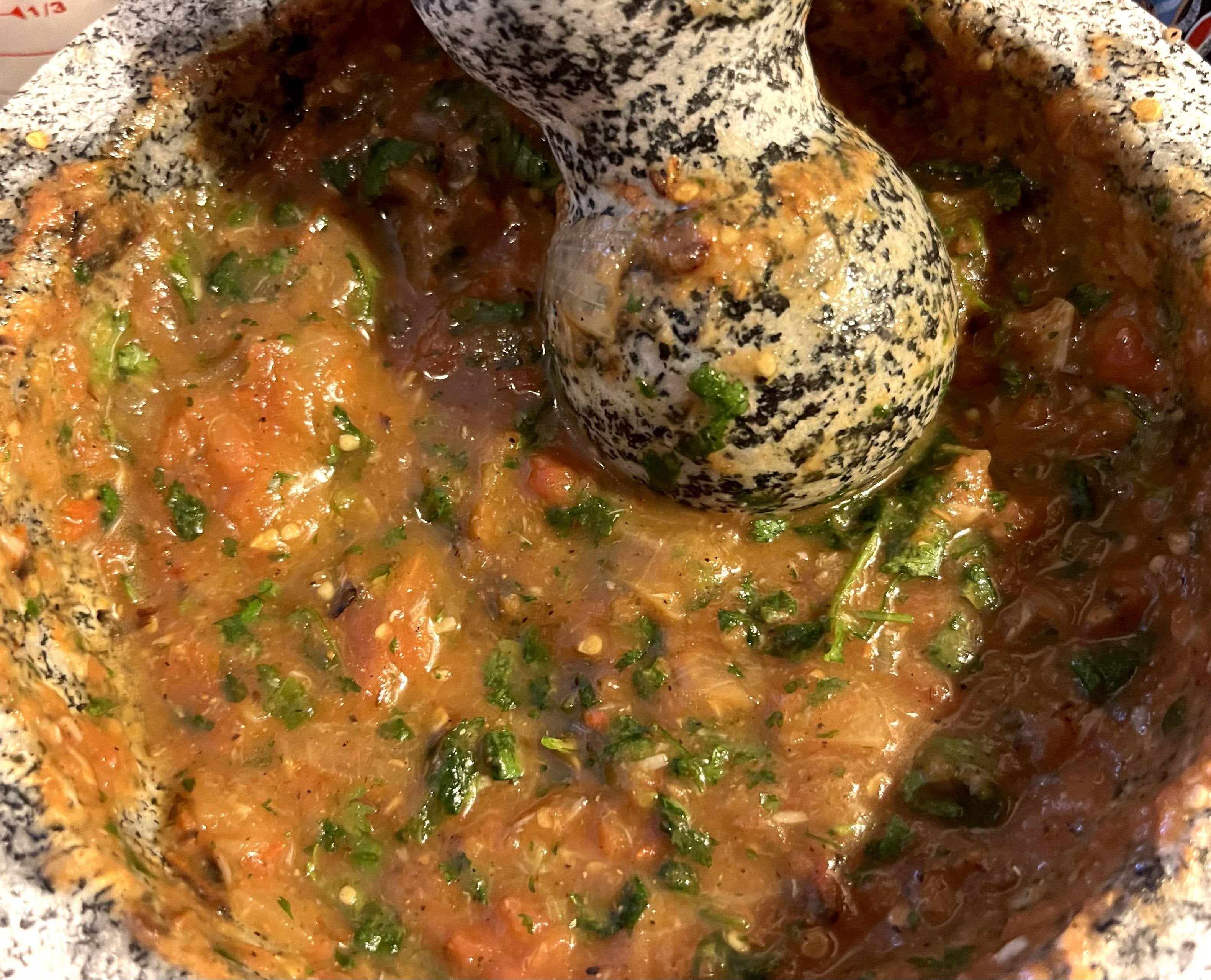 first time using my molcajete, and this salsa is awesome!