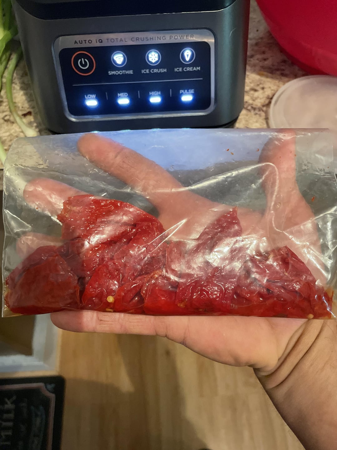 I finished off half of the blender with a bag of around 10 Ghost Peppers from the freezer. Some of my friends don’t like spicy while me, a buddy and my dad love the pain.
