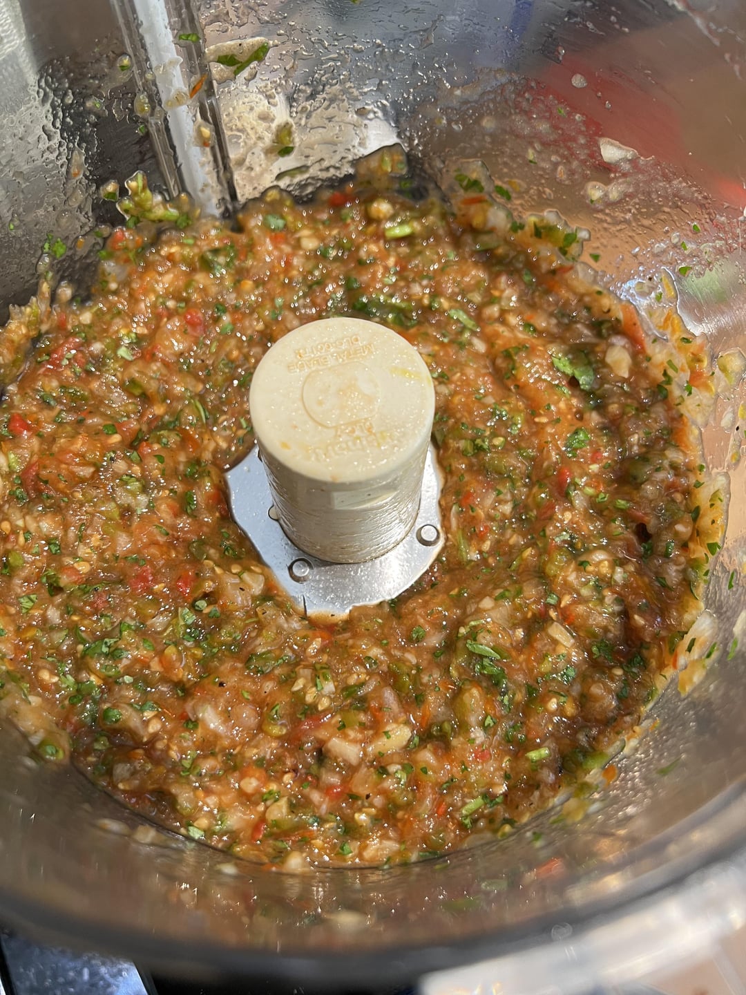 Ingredients as you can see put in smoker for almost an hour around 300° chopped in the food processor. Added cilantro, lime juice and S&P.