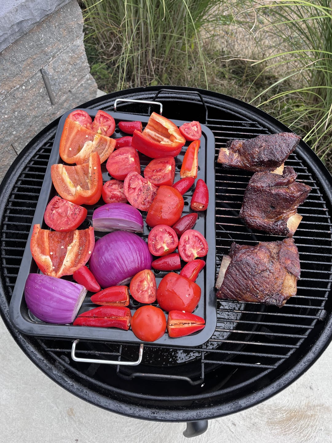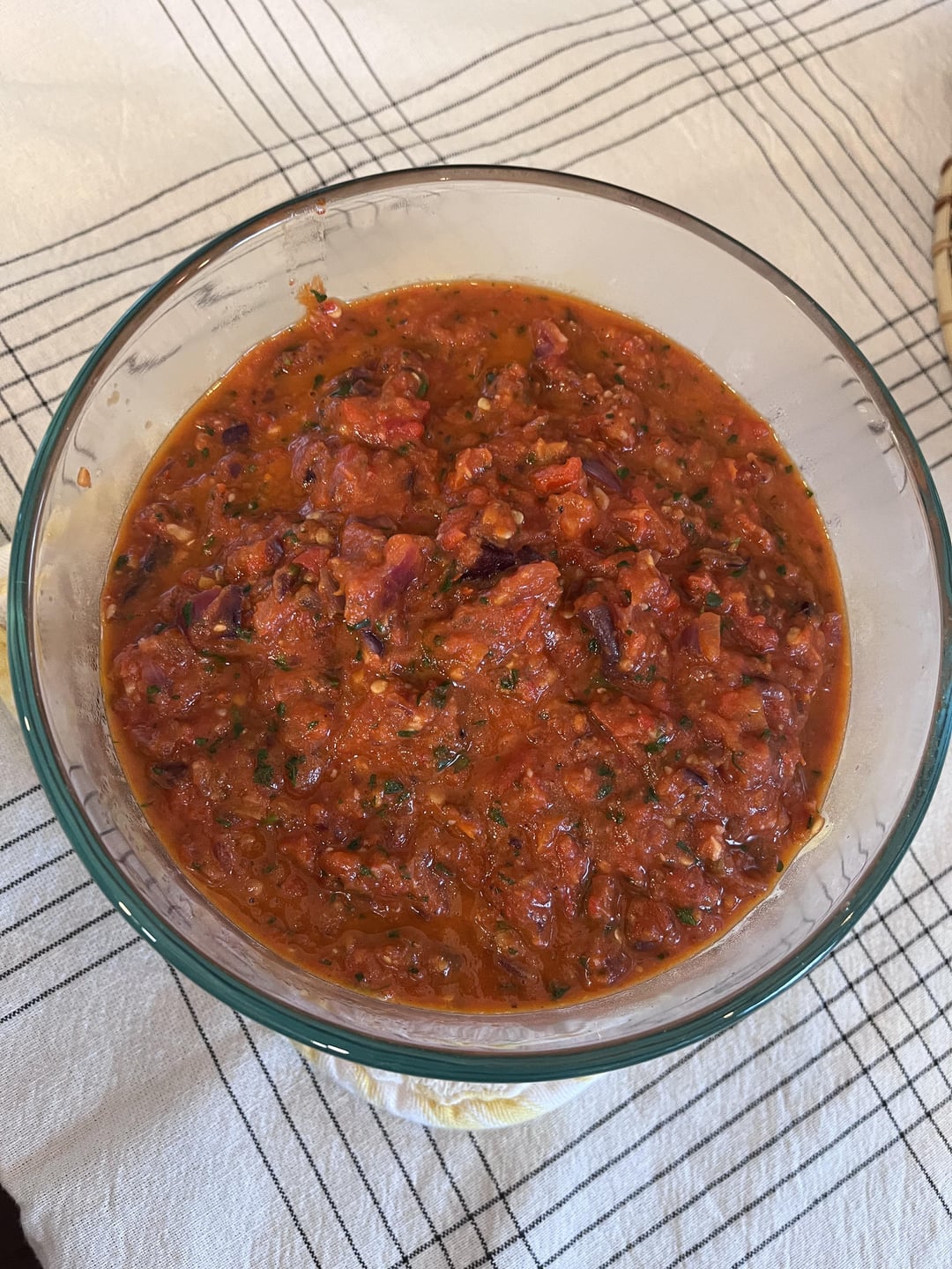 HurinofLammoth 3 years ago Smoked tomatoes, onions, and jalapeños from the garden, cilantro, roasted garlic, lemon juice, salt/sugar/pepper, bit of olive oil.