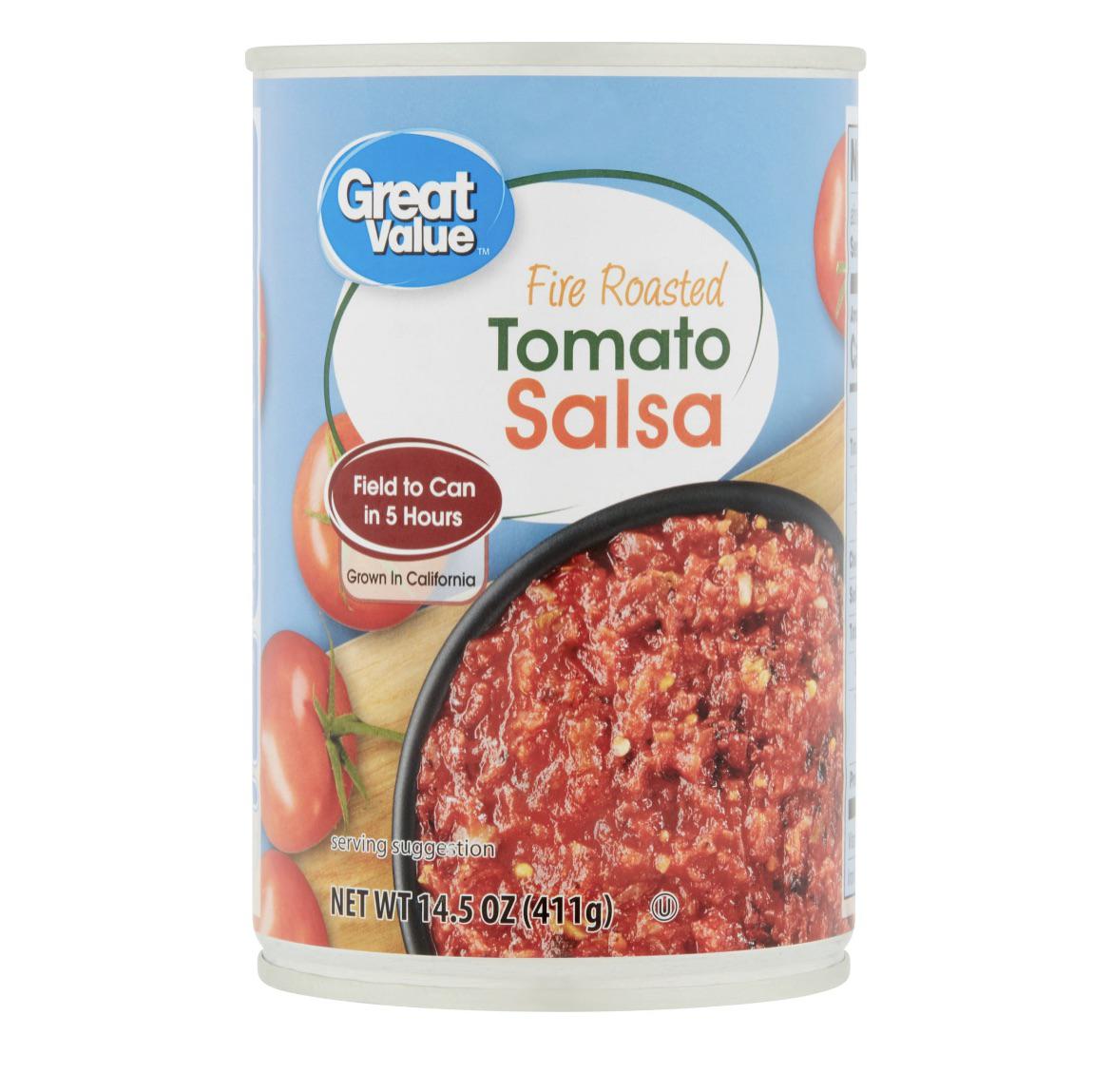 Great Value Fire Roasted Tomato Salsa is the perfect way to turn up the flavor in all your favorite recipes. Spice up your parties, game day barbecues, and picnics with the tantalizing smoky taste of fire roasting. This salsa is delicious in guacamole, on top of burritos and nachos, or as a dip with tortilla chips. The ripe tomatoes in this salsa are grown exclusively by family farmers located in the sunny Central Valley of California, picked at the peak of freshness and canned within five hours to maintain that farm-fresh taste. Made from a zesty recipe with diced jalapeño, Anaheim peppers, onions, garlic, and finished with spices, this salsa is sure to be a crowd-pleaser!
