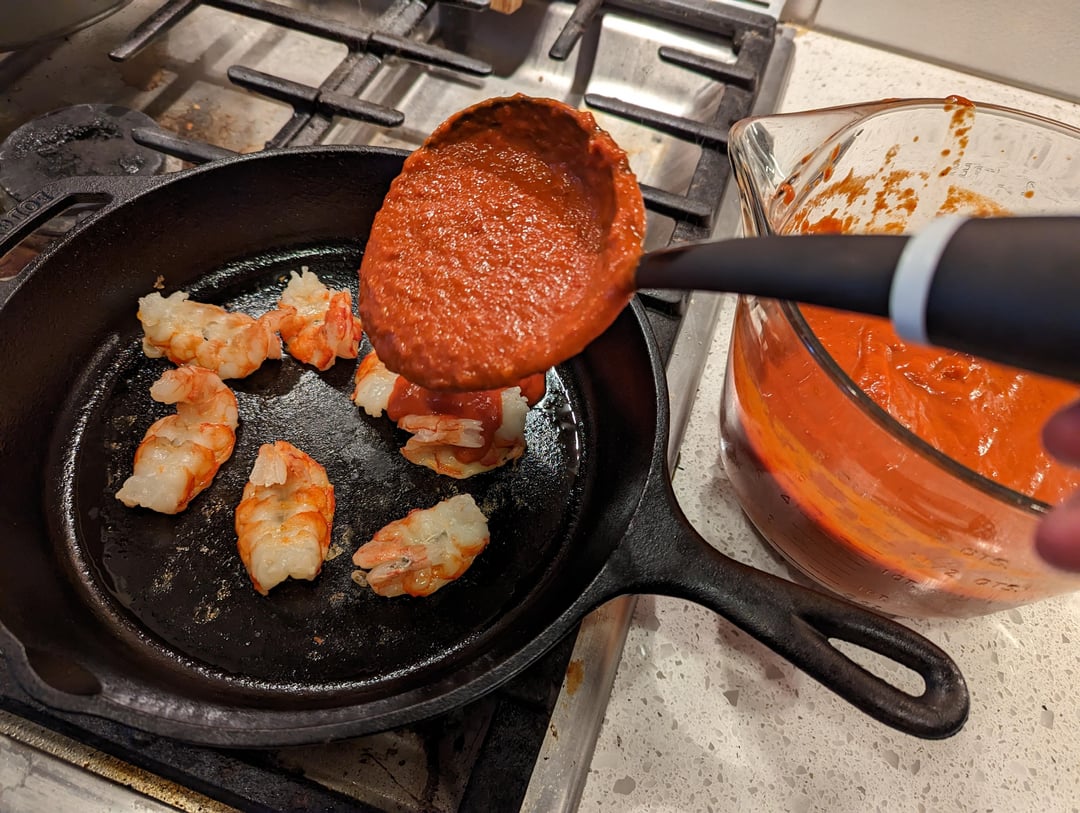 Probably because the rich sauce is basically a salsa, my favorite Mexican seafood dish is Camarones a la Diabla.