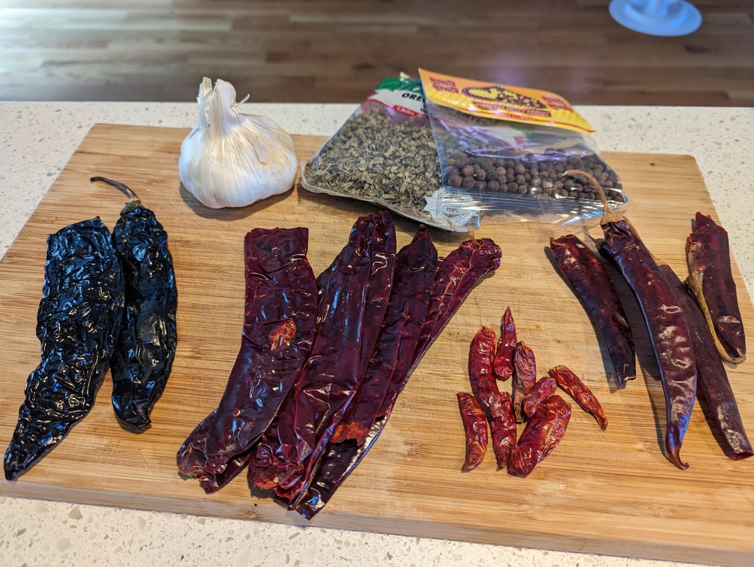 After test kitchenting two different batches I settled on a combination of four dried peppers: