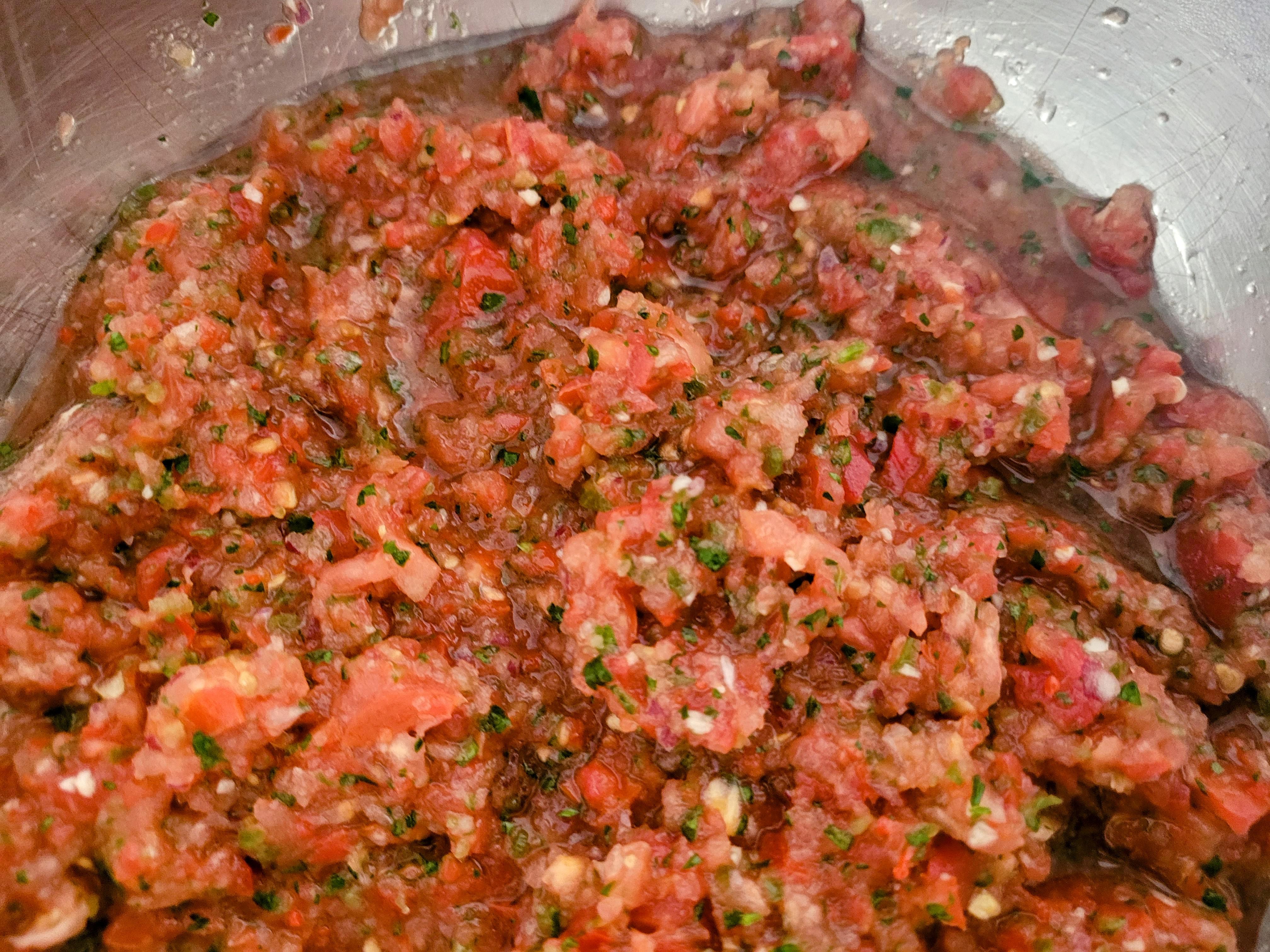 Pulsed in the blender until it’s your desired texture. Then strained and stirred. Voila.