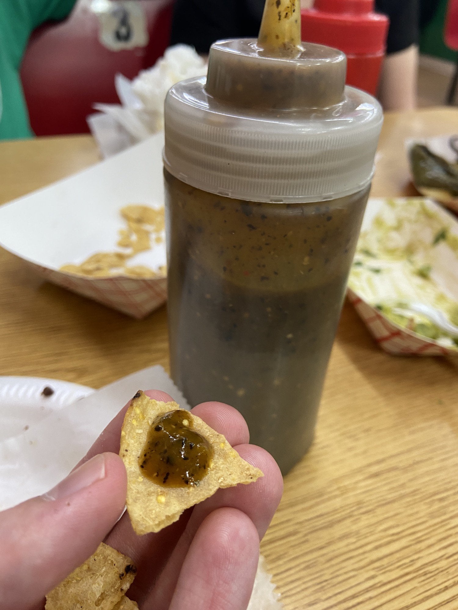 Supermercado Chapala in Chicago has incredible salsa “verde” – or at least that’s how it’s labeled, but it doesn’t look or taste quite like any other verde I’ve ever seen. Can you tell what exactly this might be made of?