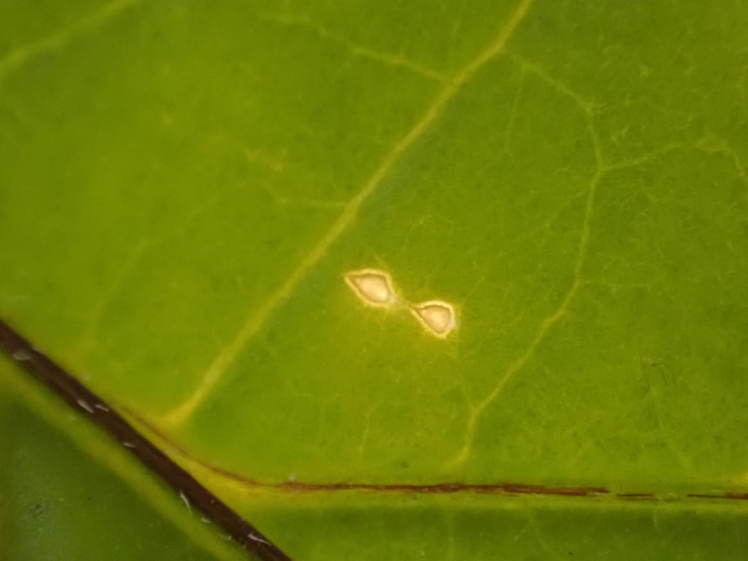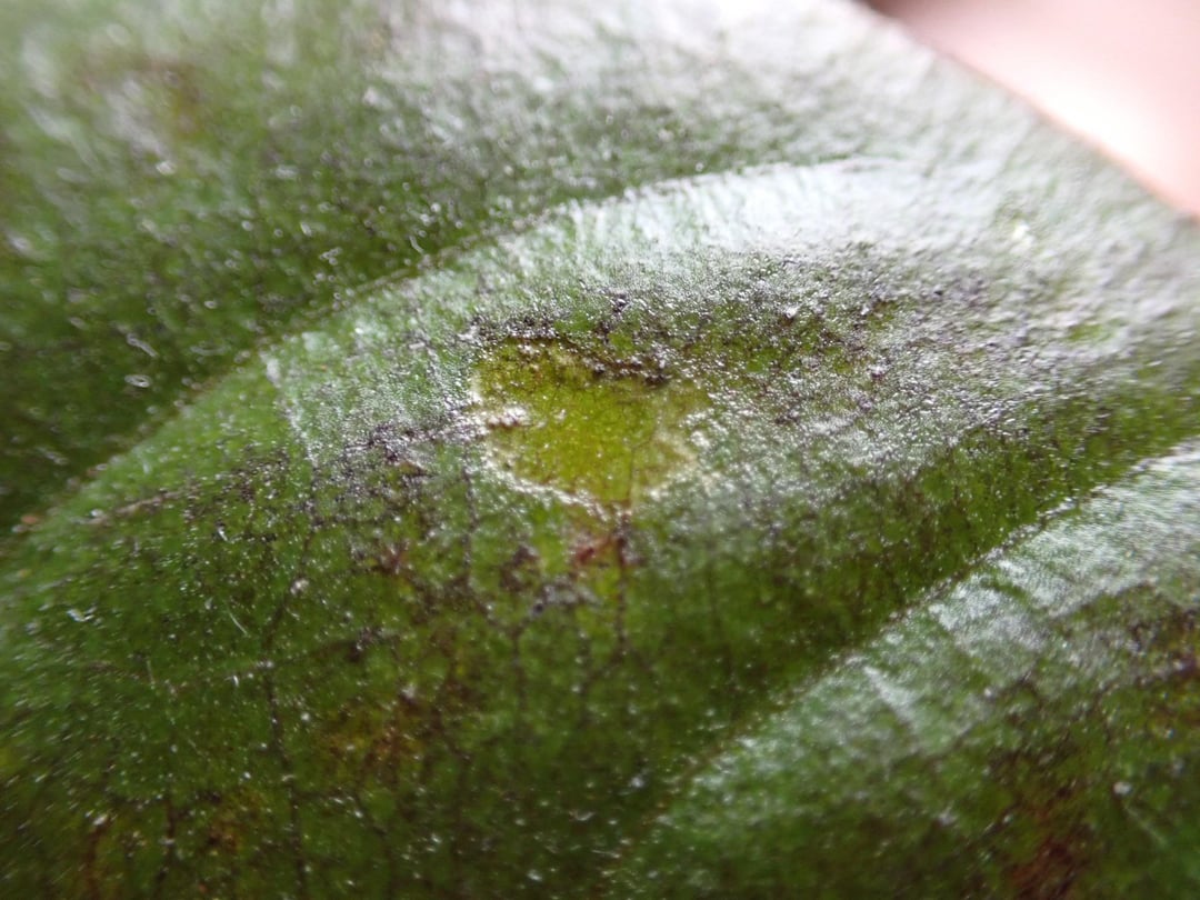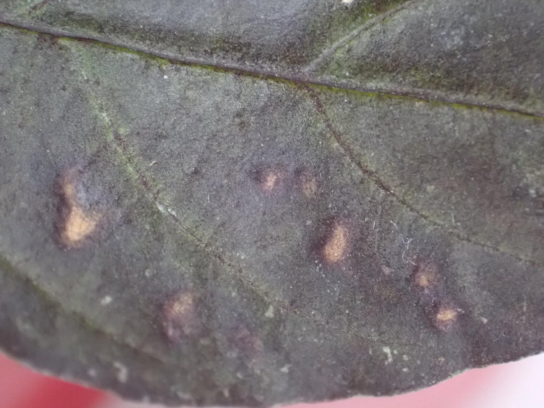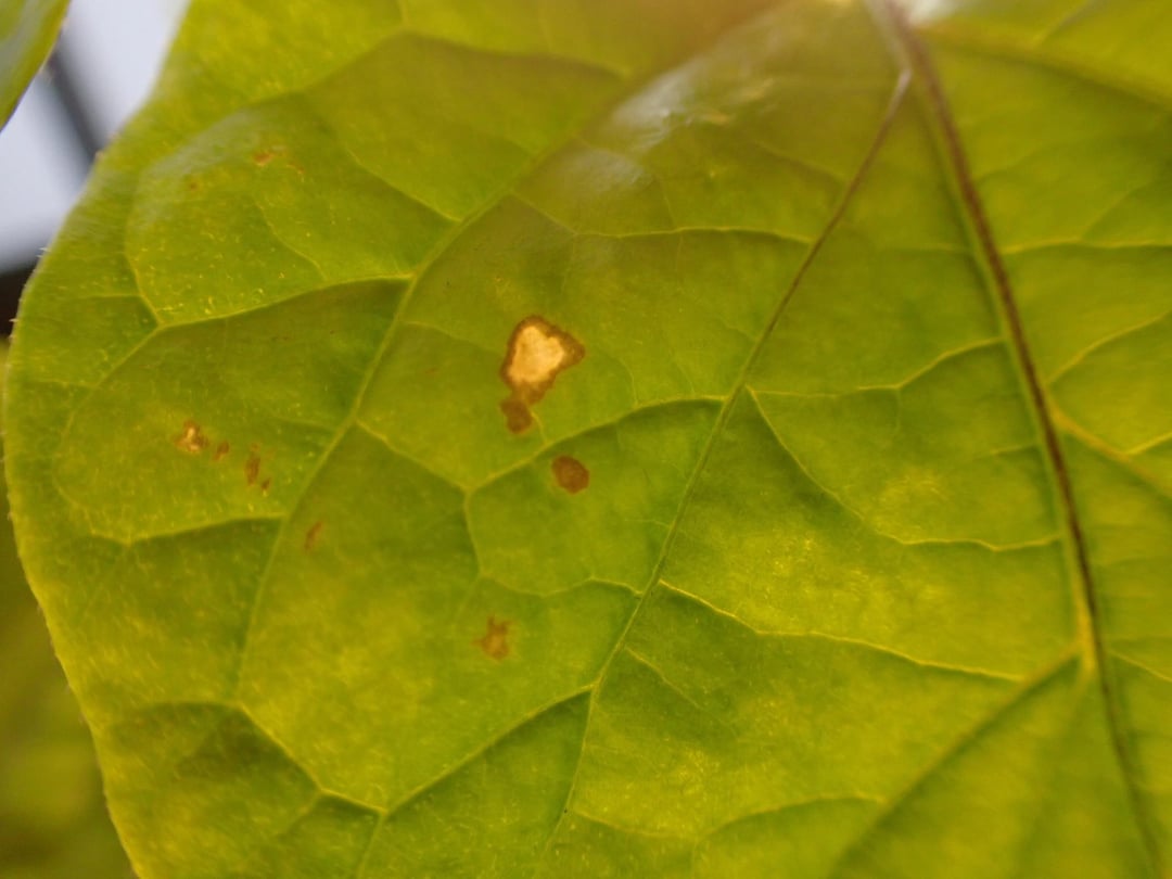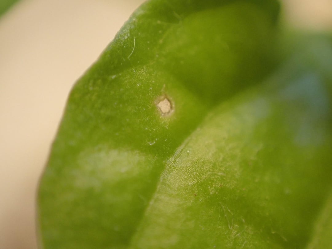 Older plant and leaves have transparent dots which are sometimes just round holes. They are mostly very small round dots. In some plants, they are larger with brown outlines (image 3)