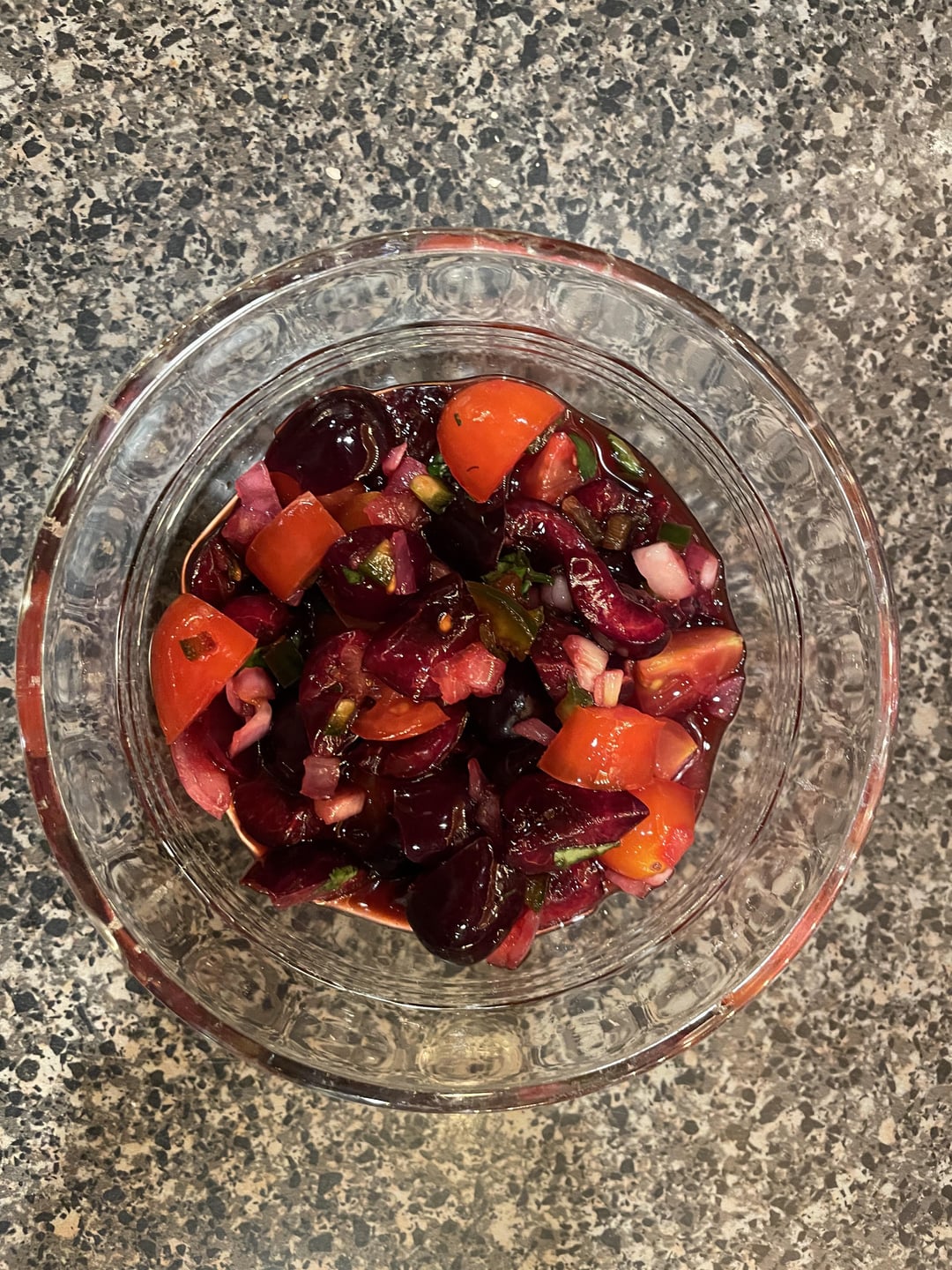 This sounds pretty good. Never thought of peppers and cherries together but I could imagine it’s pretty good.