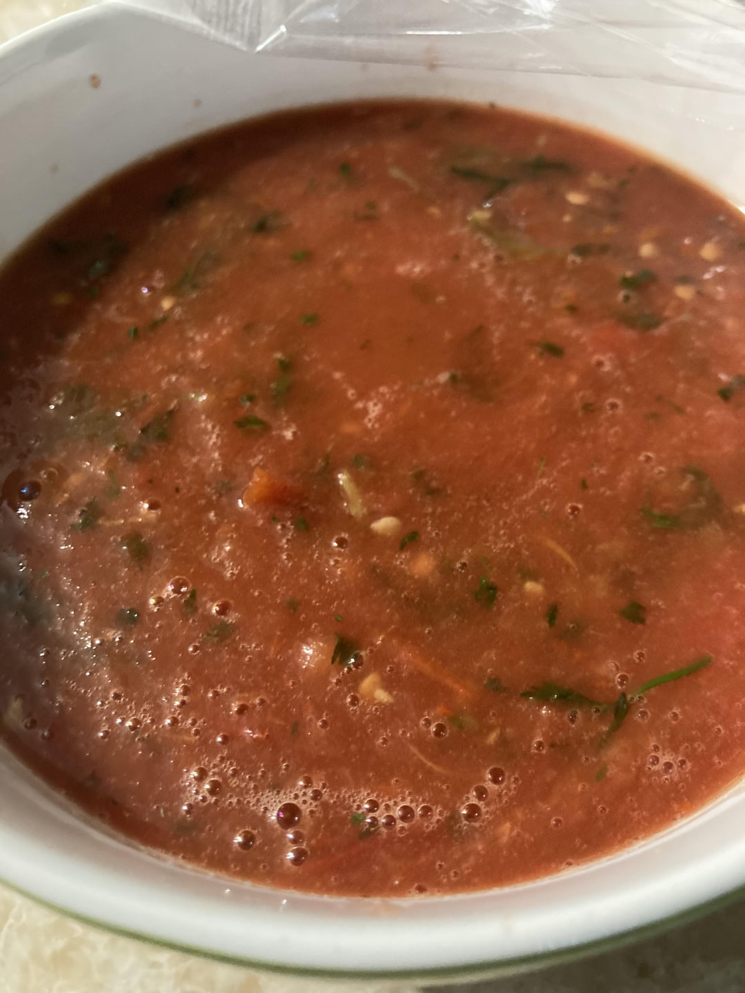 Roasted tomatoes, chilli peppers, fresh squeezed lime juice, green onions, cilantro, sugar, and salt is all I need for a yummy salsa