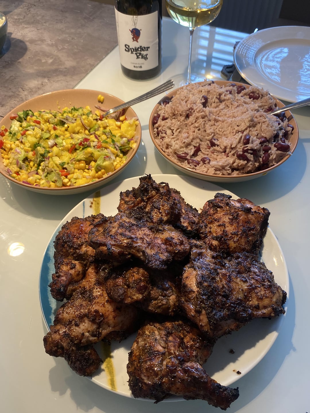 Made a mango, corn and avocado salsa for jerk chickenby HAARTburn pico de gallosalsaSauce 1 Comment HAARTburn 2 years ago Grill two corn cobs; I did mine on the bbq. Dice one mango and two avocados. Put in a bowl with the roasted corn kernels. Add half a red onion, one red chilli, juice of a lime, salt, pepper and parsley. Enjoy!Write A CommentYou must be logged in to post a comment.