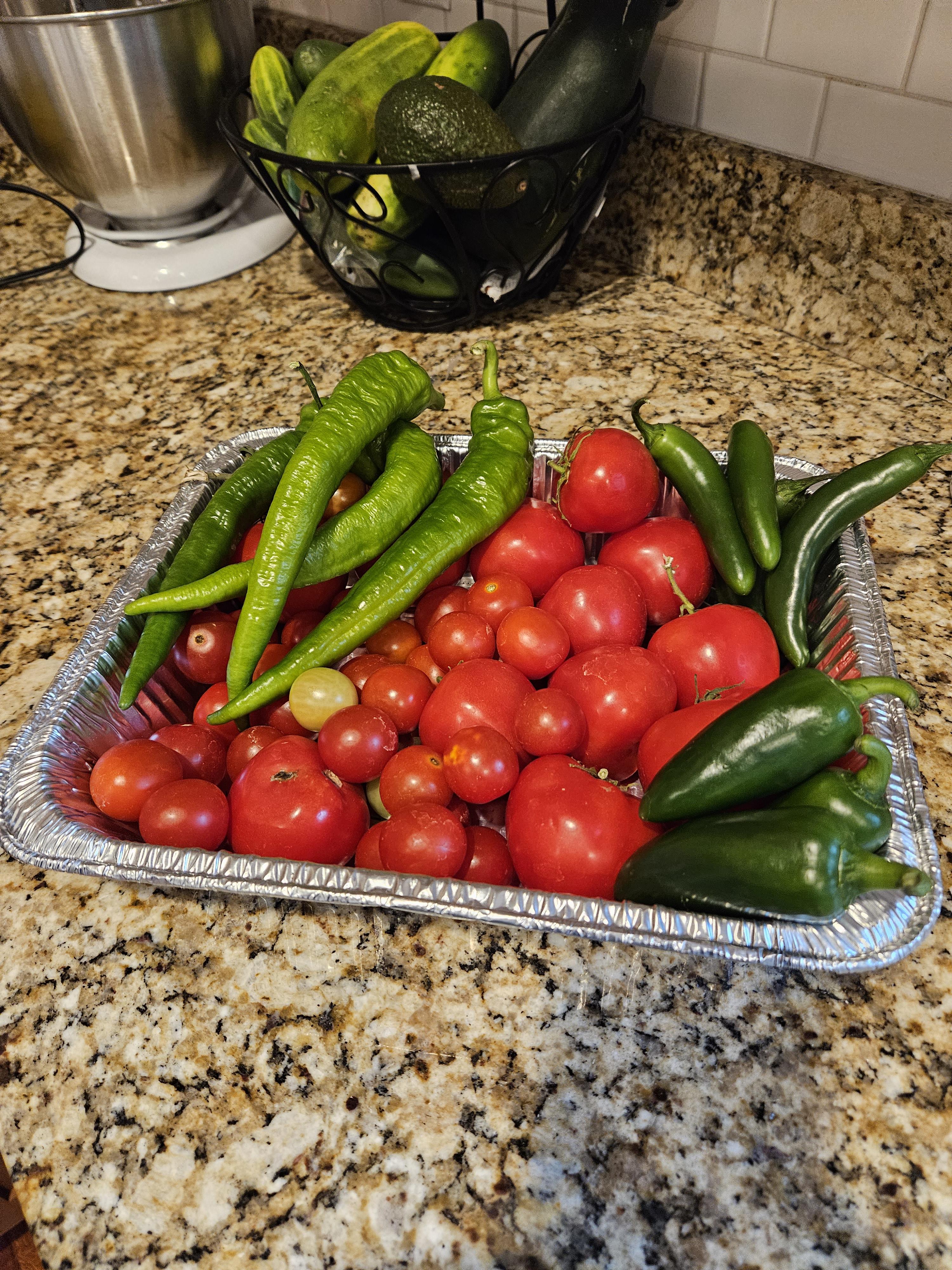 Found this page in the comment section on r/gardening and am looking for some recommendations. The garden is hitting it’s stride and will be pulling more of these every few days. Peppers are jalapenos serranos cayenne and have plenty of cilantro and parsley available as well.
