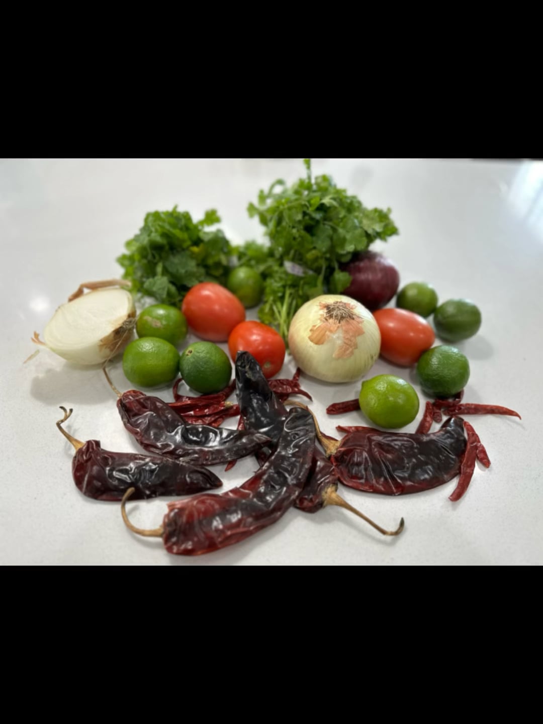 Red: tomatoes, tomatillos, onion, garlic, serrano, jalapeño… seared and sweated on a cast iron pan then thrown in a blender… add chile guajillo, chiles de arbol, cilantro, lime juice, caldo de pollo, salt, pepper, onion powder, garlic powder, and a touch of water then blend until the chiles are broken down…