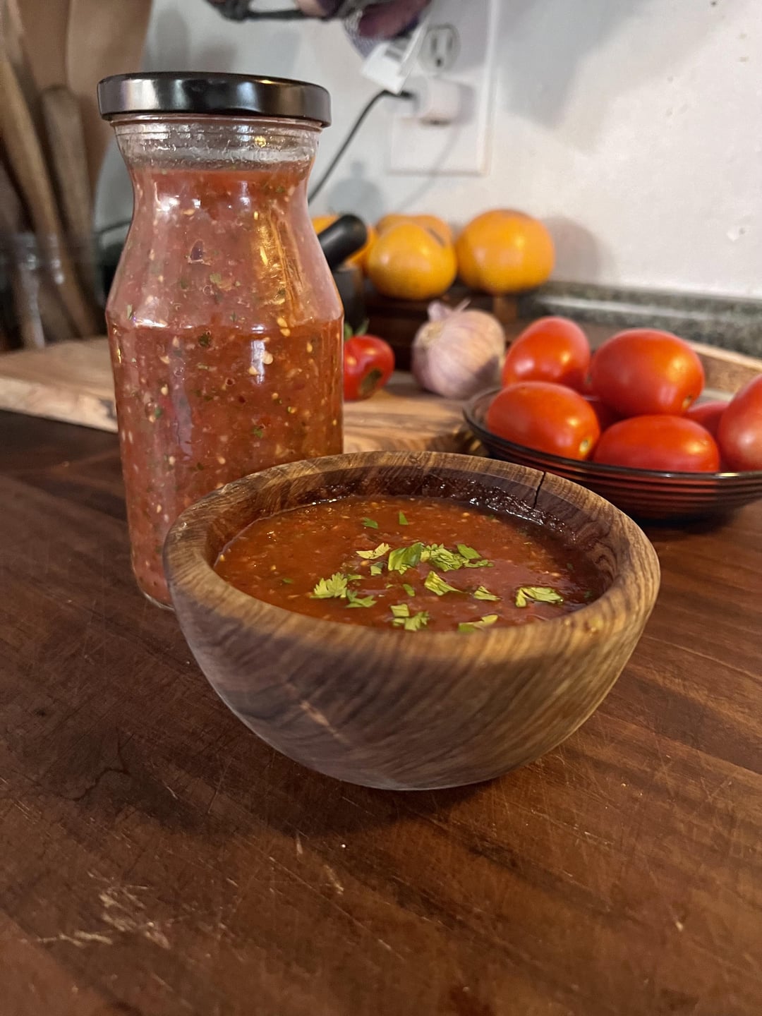 I took a bunch of tomatoes, chopped them up with a half red onion, 2 jalapeños, few cloves of garlic and a bunch of cilantro. Mixed that with salt and sealed that all in a vacuum sealed bag and let it sit for three days.