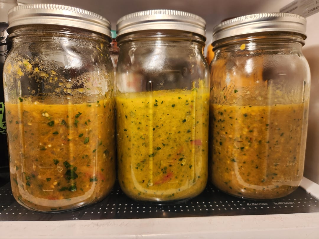 Salsa day from the garden! Fire roasted jalapeno , Peach Serrano , Mango Habanero by sefhinny pico de gallosalsaSauce 4 Comments sefhinny 2 years ago Fire roasted Jalapeno:Jalapeños, green peppers , onion, garlic, cilantro, lime , tomatoes, chicken bouillon, salt, vinegarSerrano Peach : Peaches , onions , jalapeños, tomatoes , seranos, salt , and honeyMango habanero : Mangoes, habaneros, onion , jalapeños, tomatoes , lime juice, salt , bouillon, cilantro, Mike’s hot honey plainsailingweather 2 years ago Damn can I get an actual recipe for that peach serrano? Justinterestingenouf 2 years ago Abundance!! bozeke 2 years ago Can we trade gardens?Write A CommentYou must be logged in to post a comment.