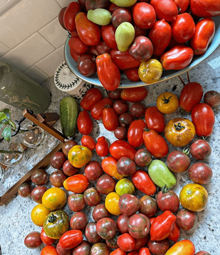 Recipe: Roughly chop the tomatoes. Place the tomatos in the bowl of a food processor fitted with the blade. Pulse only a few times, just enough to finely dice thetomatos and not enough to purée. If you don’t have a food processor, you can finely dice by hand. Adjust seasonings.