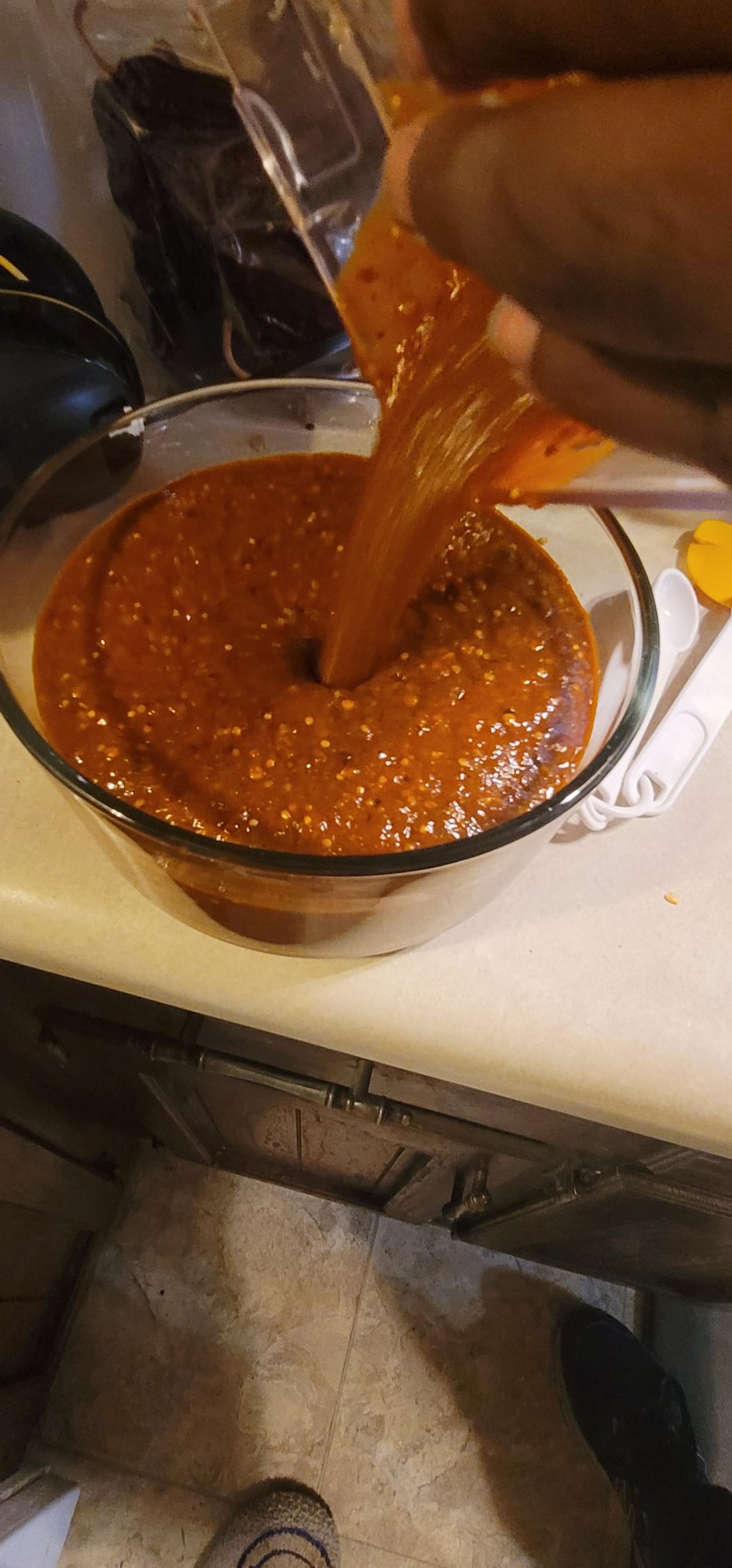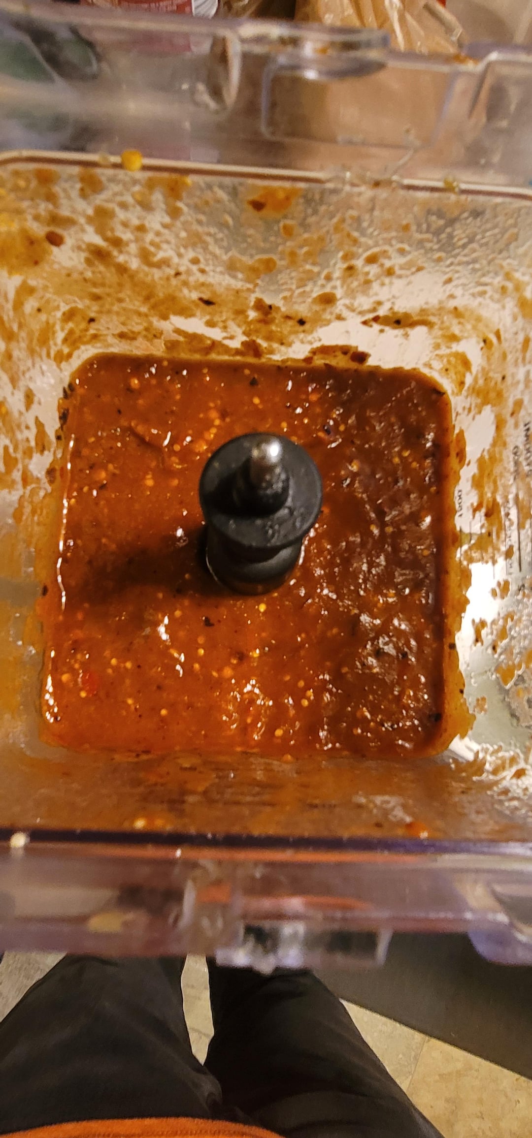 This is 6-7 cups worth. I used eighty, yes 8-0, chile de arbol peppers. Woooooooo! Next time I may just trupy give it that time to de-seed but I was crunched for time.