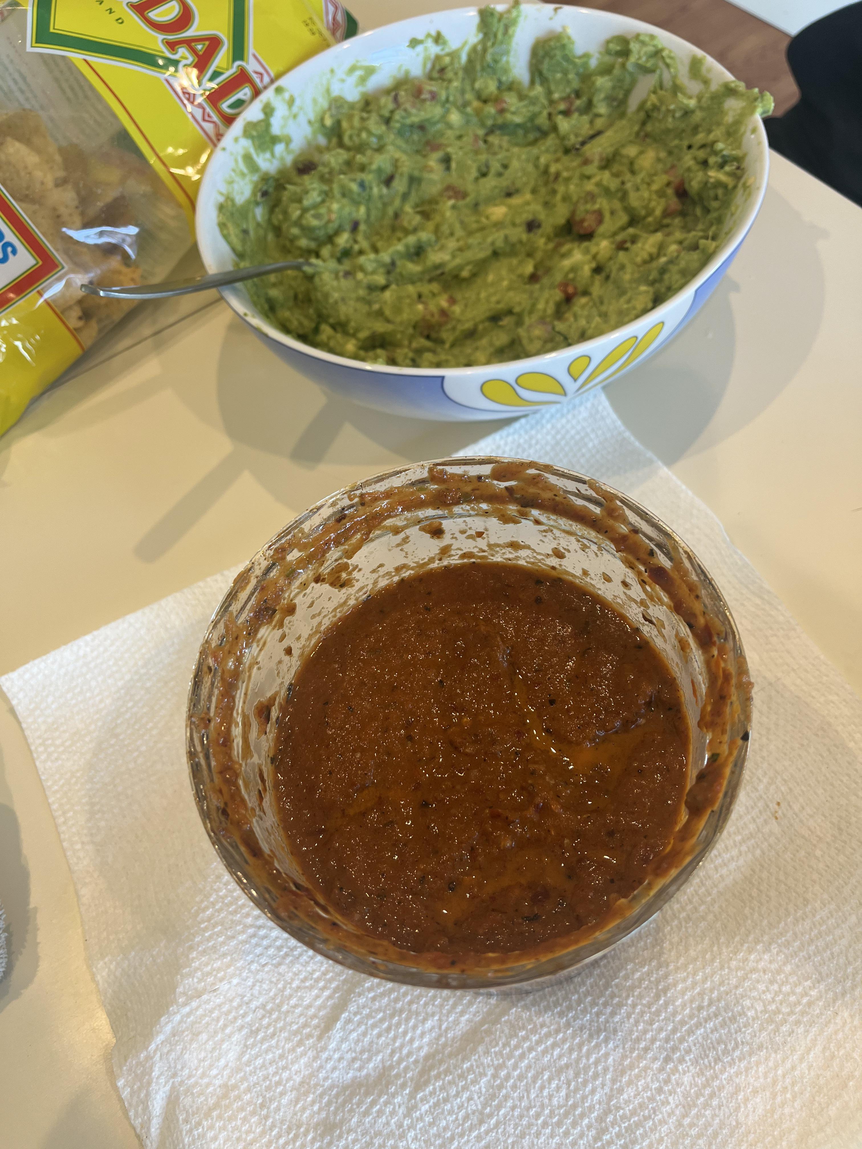 Chile de Arbol Salsa + Guac for some joy during Raiders football tonightby jjak34 pico de gallosalsaSauce 4 Comments jjak34 2 years ago Salsa ingredients: 1/2 cup Chile de arbol peppers 3 Guijano peppers destemmed 3 Roma tomatoes 2 tomatillos 2 Serrano peppers 1 jalepeno 1/2 clove garlic 1/4 white onion Vegetable oil Mix of chicken and tomato bouillon 2 tomatillos Lime and MSG to taste raptorsvt65 2 years ago Go CHIEFS! Looks good. Hoes_In_Diff_Codes 2 years ago Looks good. The decision to take the field goal tho lol.. JLUV74 2 years ago I thought this was goitgo be a mix!Write A CommentYou must be logged in to post a comment.