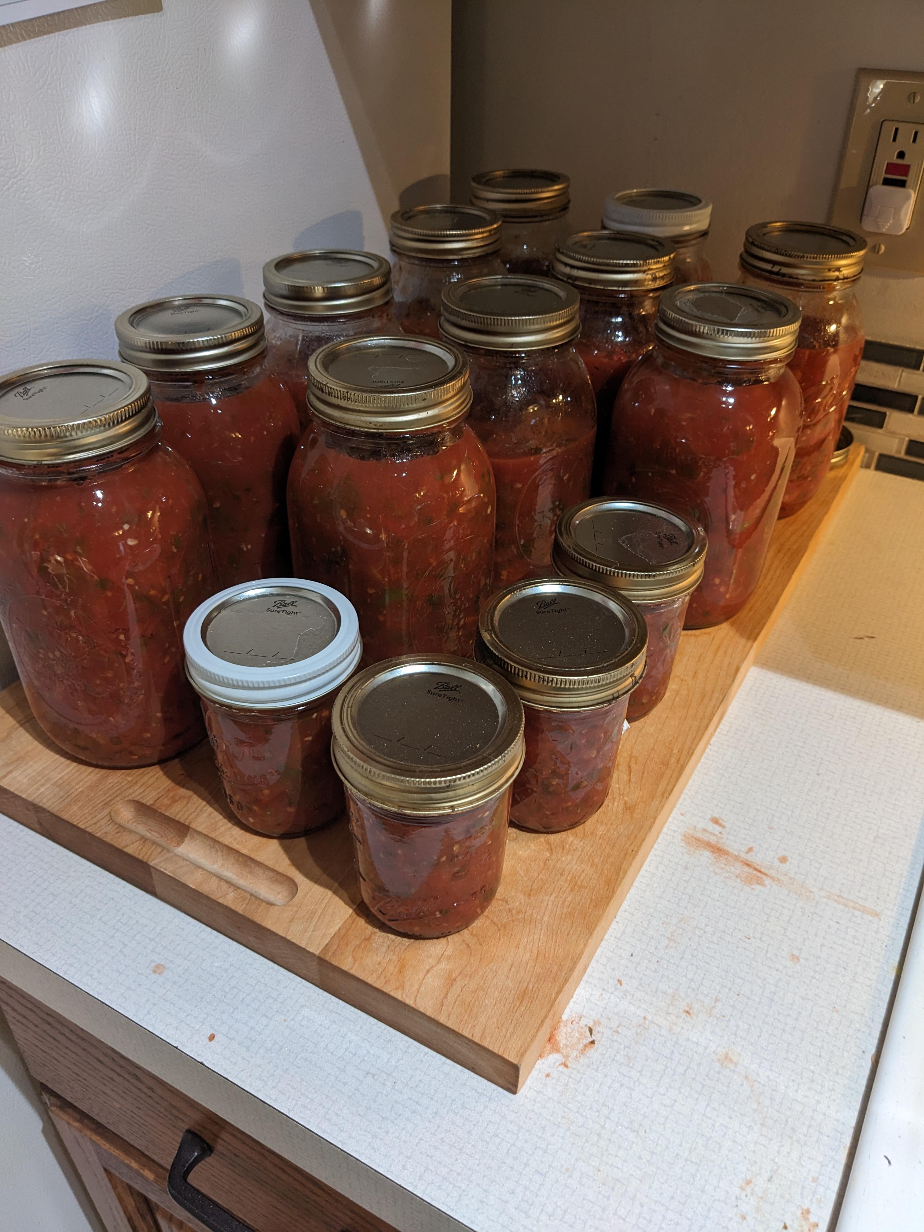 Made with garden grown onions, bell peppers, tomatoes, habanero peppers, jalapeno peppers, cilantro, and garlic.