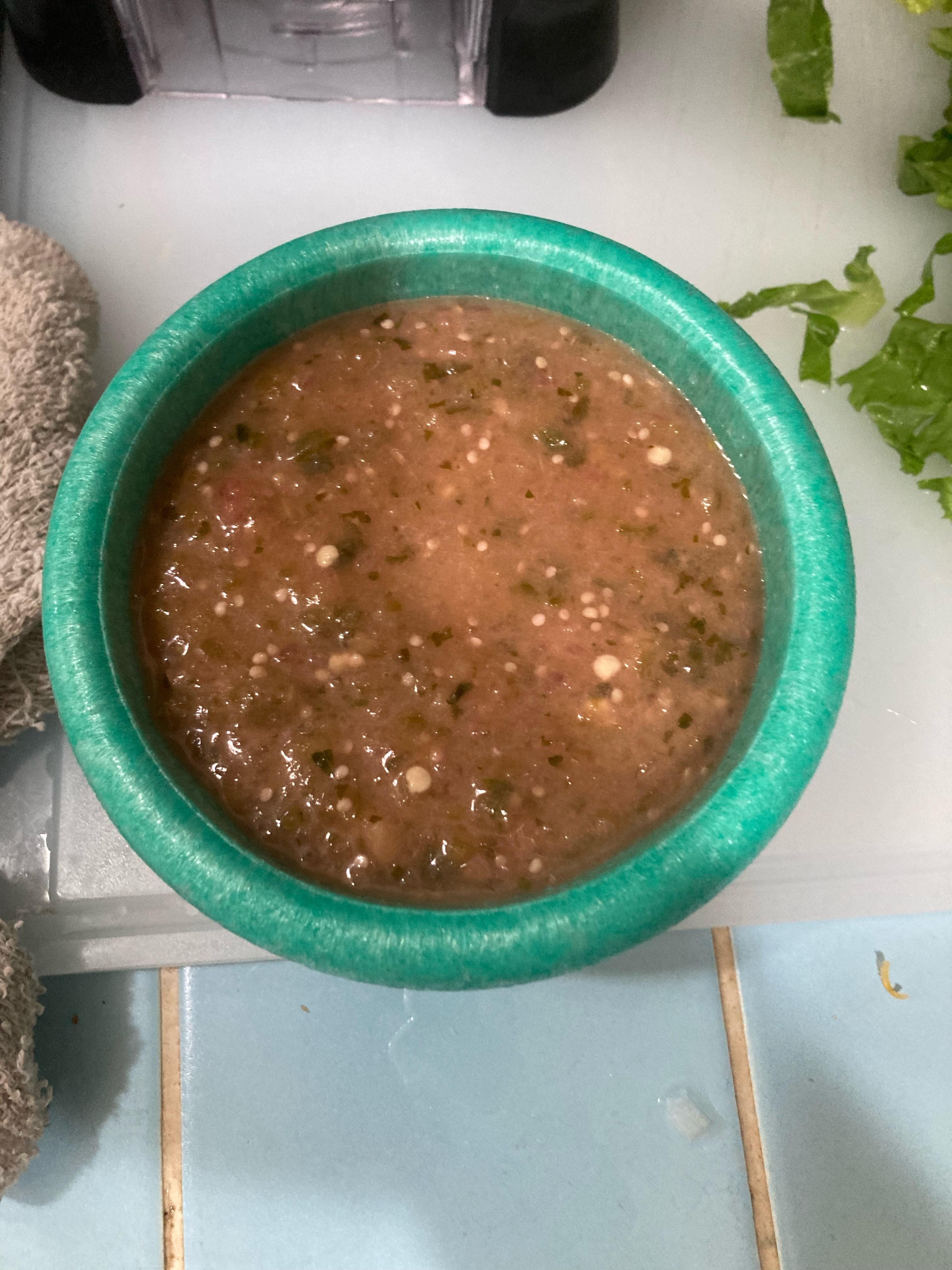 I made it literally like 15 minutes ago. I used tomatillos, half a red onion, fresh squeezed lime juice, cilantro, and kosher salt