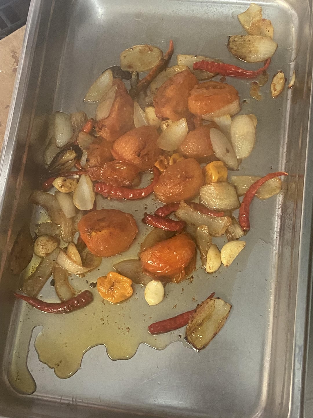 Cayenne / habanero by chantingandplanting pico de gallosalsaSauce 1 Comment chantingandplanting 2 years ago 2 habaneros6 cayennes2 large tomato’s1 onion8 cloves garlic1 tsp chicken base4 tsp white vinegar1/2 cup h201/4 tsp Mexican oregano1/4 tsp cumin1/4 tsp smoked paprika2 tbs grape seed oilSalt to tasteWrite A CommentYou must be logged in to post a comment.