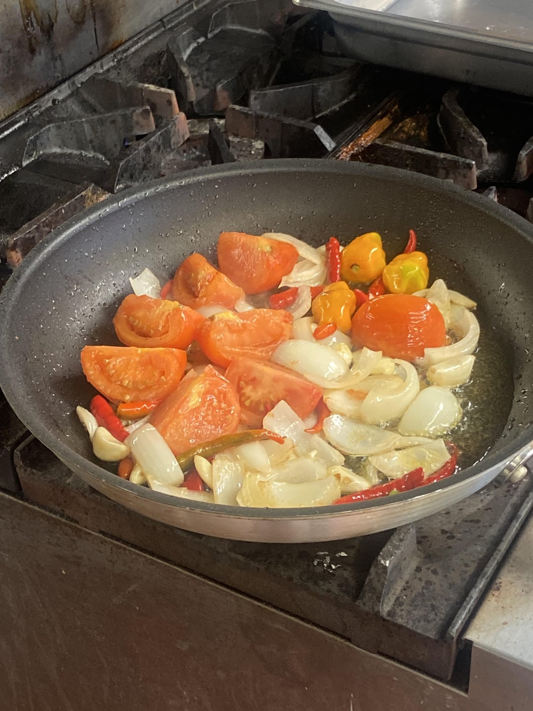 chantingandplanting 2 years ago 2 habaneros6 cayennes2 large tomato’s1 onion8 cloves garlic1 tsp chicken base4 tsp white vinegar1/2 cup h201/4 tsp Mexican oregano1/4 tsp cumin1/4 tsp smoked paprika2 tbs grape seed oilSalt to taste
