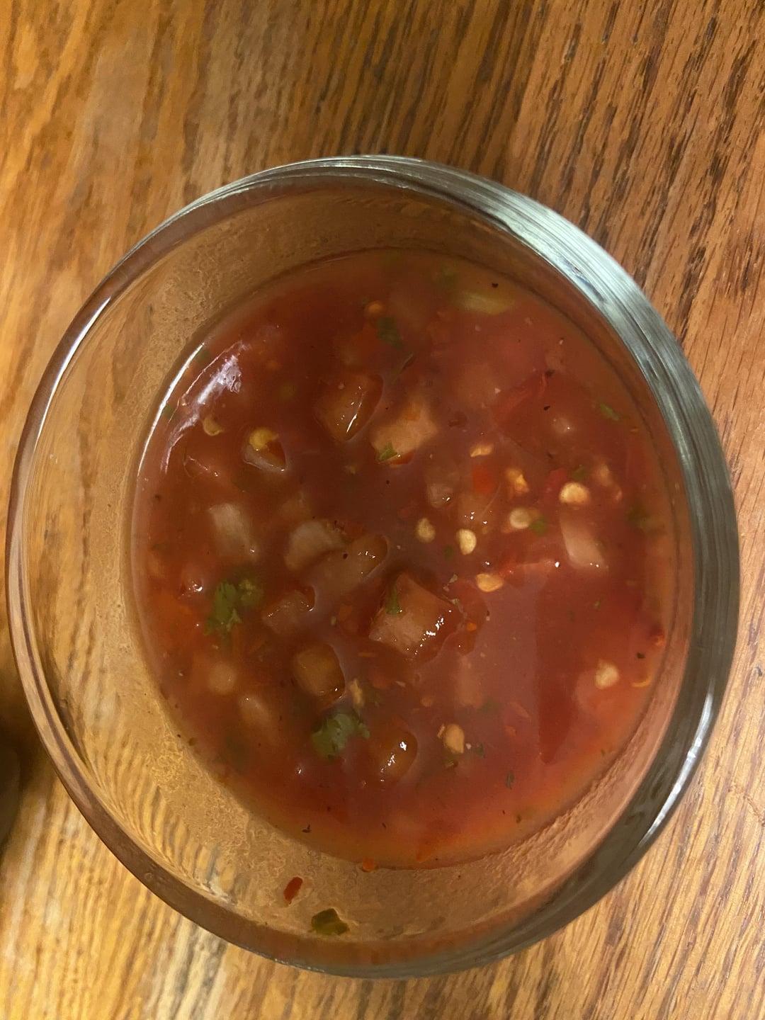 canned tomatoes, canned tomato juice, diced onion, sprinkle of cilantro and a shit ton of salt